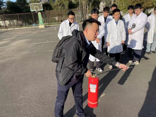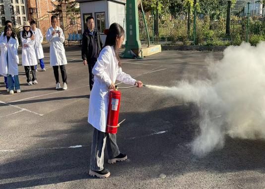 会后,在杨教官的指导下进行了消防实战演练。