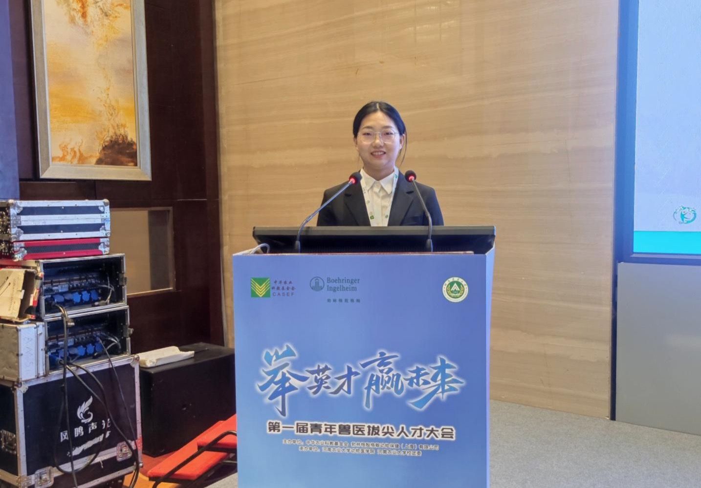 2023年12月16日-18日,由中华科教基金会、勃林格殷格翰动物保健(上海)有限公司主办的第一届青年兽医拔尖人才大会在河南农业大学举行。来自全国38个高校,85位师生参与本次项目评选申报,经过层层评选和激烈角逐,我院博士研究生袁中伟、韩碧琦获得青年兽医拔尖人才优秀奖。