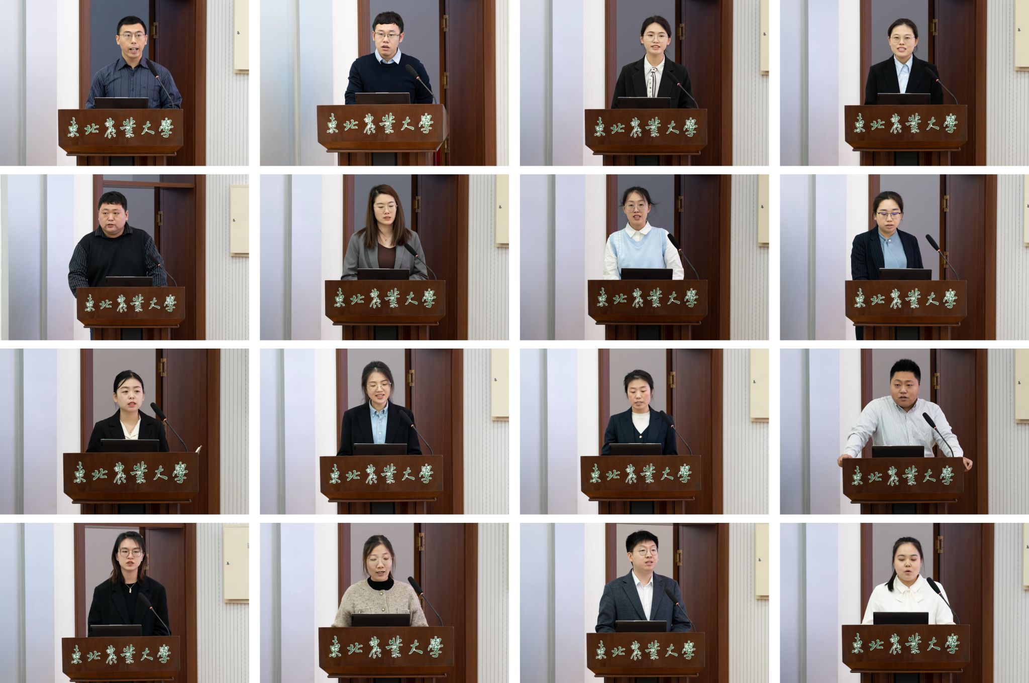 随后进入青年教师奖教金评比答辩环节,比赛由评委会主席粟硕主持。答辩中16位青年教师围绕近五年拟申报国家和省部级人才项目为蓝本进行汇报和答辩,并采取“一述一评”的方式,9位评审专家为每一位青年教师的学术成果及发展方向进行现场点评指导,为青年教师“问诊把脉”。