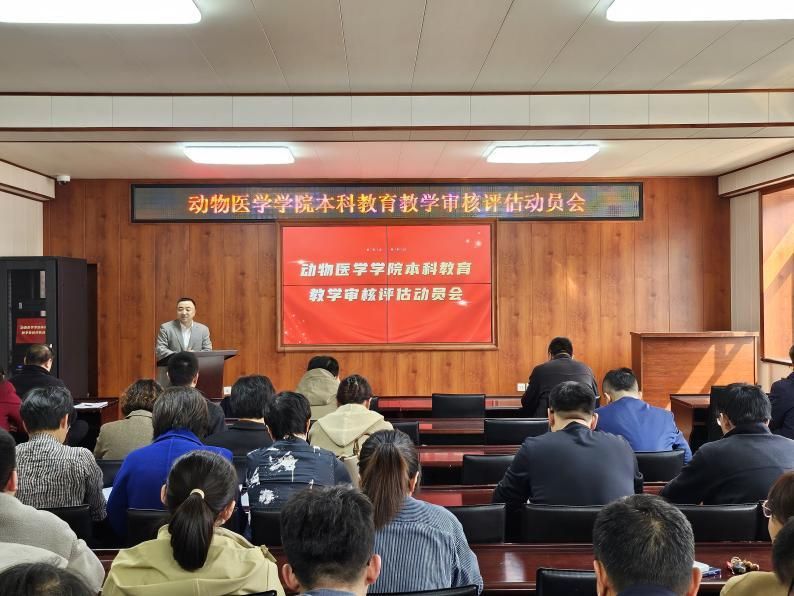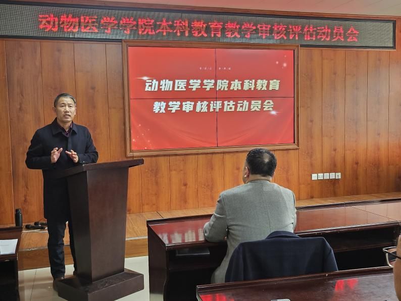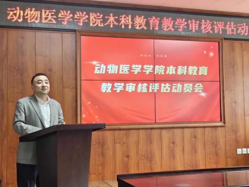 学院院长李金龙在动员讲话中强调,审核评估是教育部为促进高等学校加强内涵建设,强化教育质量意识,建立自我约束机制,不断提高教育质量而采取的一项重要举措。通过审核评估,可以全面了解学院本科教育的基本情况,查找存在的问题和不足,进一步明确学院的发展方向和目标,促进学院教育教学质量的不断提高,要贯彻以评促建、以评促改、以评促管、以评促强、评建结合、重在建设的原则,落实新时代教育教学评价体系导向要求,大力推进教育教学改革。他表示,审核评估工作是一项系统性的工程,涉及面广,任务重,时间紧,要把握好以下几个重点。一是要深刻认识审核评估工作对促进教育教学高质量发展的重要作用,学深悟透审核评估工作的新内涵、新要求,全面梳理学院教育教学基本情况,要认真梳理学院教育教学工作的各个环节,包括课程设置、教学计划、教材建设、师资队伍、实验设备、实践教学、学生管理等方面的情况,做到心中有数,为下一步的评估工作奠定基础;二是要把审核评估工作与学院教育教学工作有机结合起来,强化动医学科实践育人特色,构建实践教学体系、推动实践教学改革;三是要找准问题,高质量完成学院自评工作,深入查找存在的问题和不足,要通过审核评估,发现我们在教育教学工作中存在的问题和不足,找出原因,提出改进措施,不断提高教育教学质量,全面提升学院本科教育教学水平。四是要明确学院的发展方向和目标。要通过审核评估,进一步明确学院的发展方向和目标,为学院未来的发展提供指导和支持。