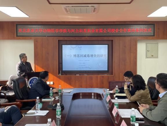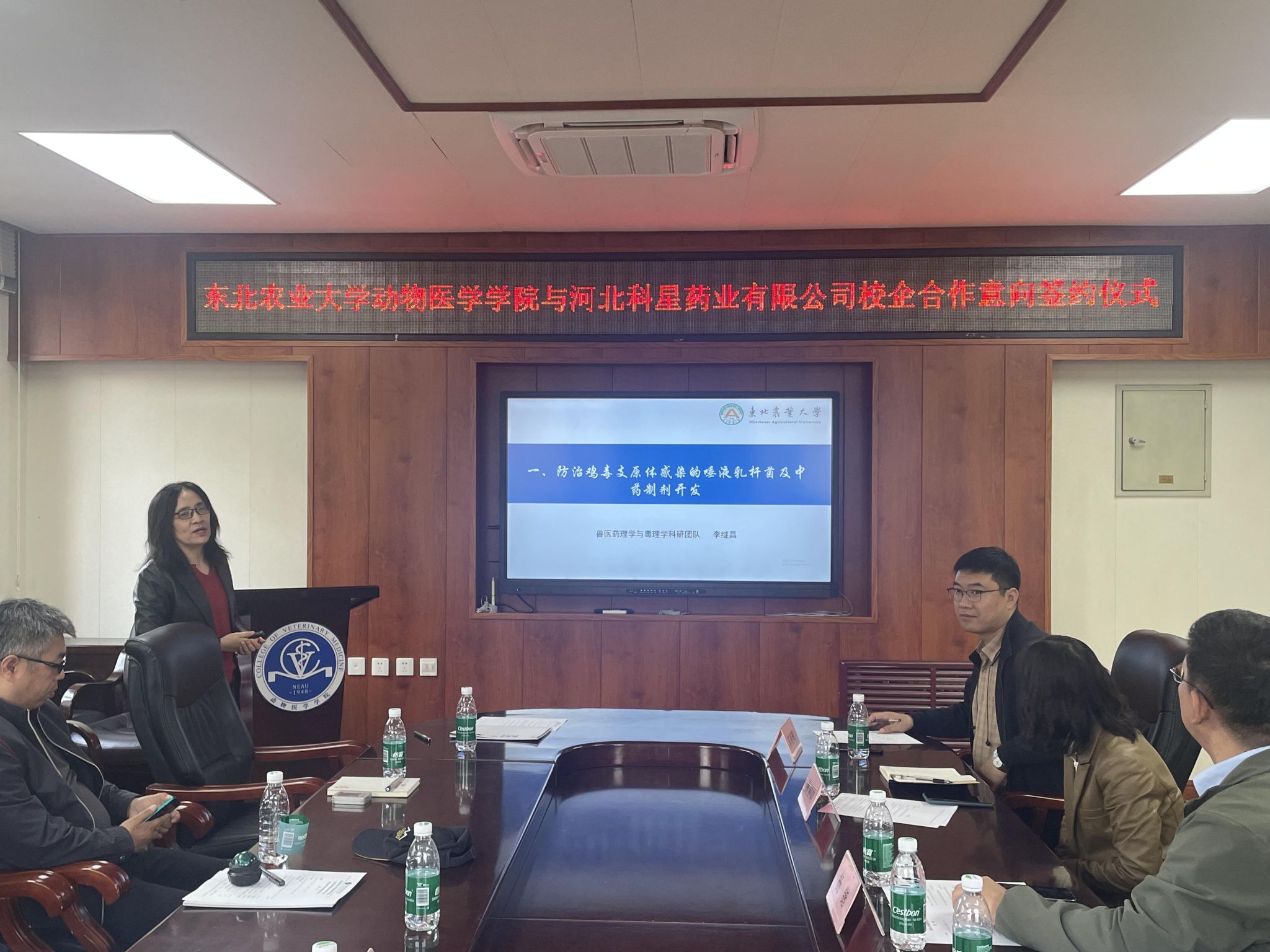 必威西汉姆官网平台教授李继昌、李艳华、宋铭忻、于文会、盛尊来、乔薪瑗进行了科研成果项目推介。从新型生物制品研制、中药制品研发、益生菌及寄生虫药物等多方面成果与科星药业紧密对接,双方就多项技术转化和产品研发初步达成共识。