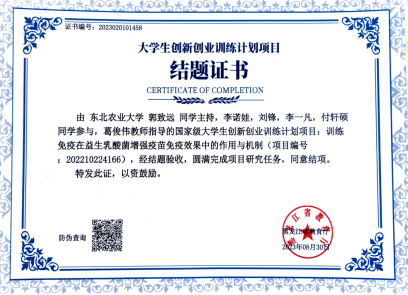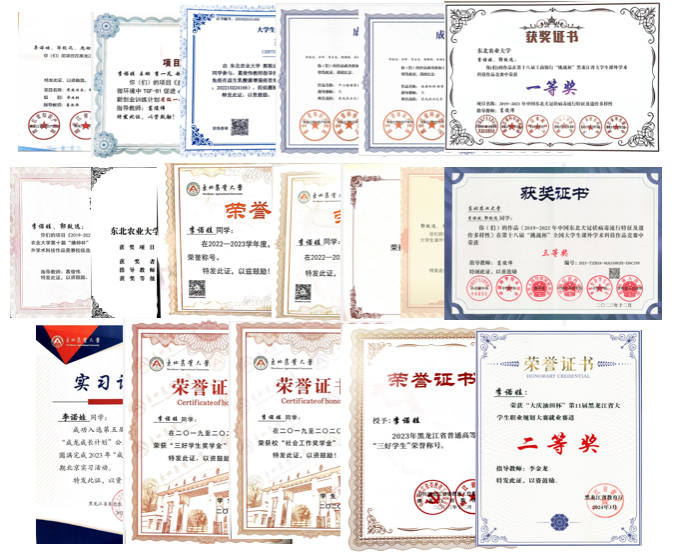 她积极参与各类竞赛,带队完成十余项国、省、校级竞赛,都获得了不错的成绩。如黑龙江省第七届知识产权杯省级三等奖、bw必威西汉姆联第三届生命实验设计大赛二等奖、第八届挑战杯校级三等奖、bw必威西汉姆联数学建模大赛三等奖等等。在第十八届挑战杯大赛中,她带队获得了黑龙江省特等奖,已被推荐参与国赛。她深刻地意识到科学研究服务生活的重要性,于是作为队长带领团队入驻了bw必威西汉姆联的创新创业中心,在长达两年的研究中,实现了由基础研究到成果转化这一过程,团队完成了一项添加了微生物“硒”的宠物营养补充剂,目前已经投入生产,受到各大宠物医院的广泛认可。
