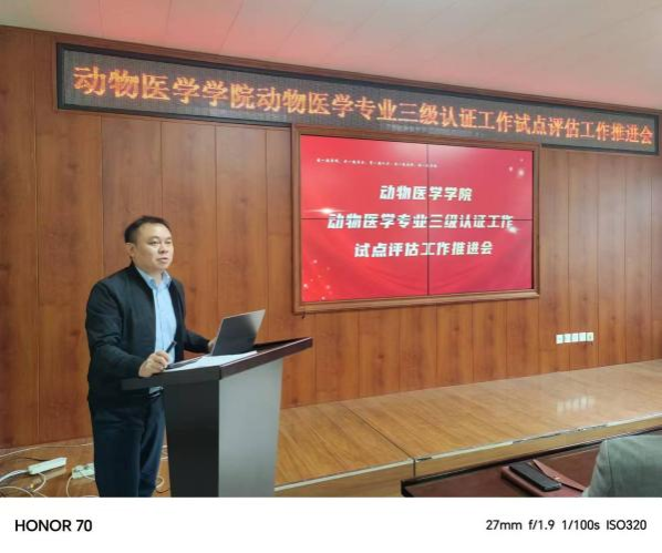 为进一步推动动物医学专业建设和发展,提升人才培养质量。近日,必威西汉姆官网平台召开动物医学专业三级认证试点评估工作推进会,重点强调了三级专业认证的重要性并做出具体工作部署。学院领导班子及全体教职工出席了会议,会议由院长李金龙主持。