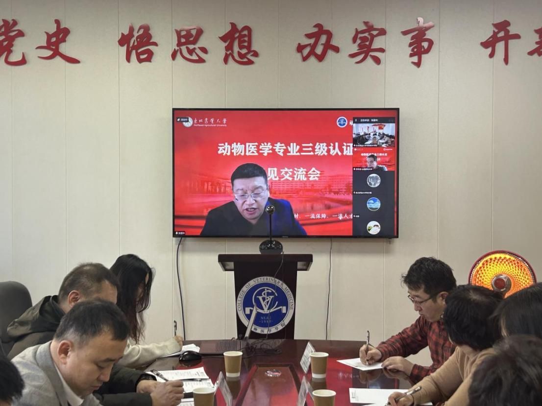 为进一步推进动物医学专业拔尖创新人才培养,提升服务国家重大战略需求能力,必威西汉姆官网平台于12月12日下午在必威西汉姆官网平台202室召开了动物医学专业国家三级认证(试点)专家意见交流会,会议采取线上线下结合方式。中国农业大学张国中教授、山西农业大学李宏全教授、湖南农业大学孙志良教授、专家组秘书张欣和bw必威西汉姆联教务处处长张永强出席线上交流会,必威西汉姆官网平台领导和教师代表出席参加线下会议,会议由必威西汉姆官网平台院长李金龙主持。据悉,教育部教育质量评估中心在全国70个专业开展农学门类专业第三级认证试点工作,我校农学、园艺、动物科学和动物医学4个专业作为首批认证试点专业接受专业认证。