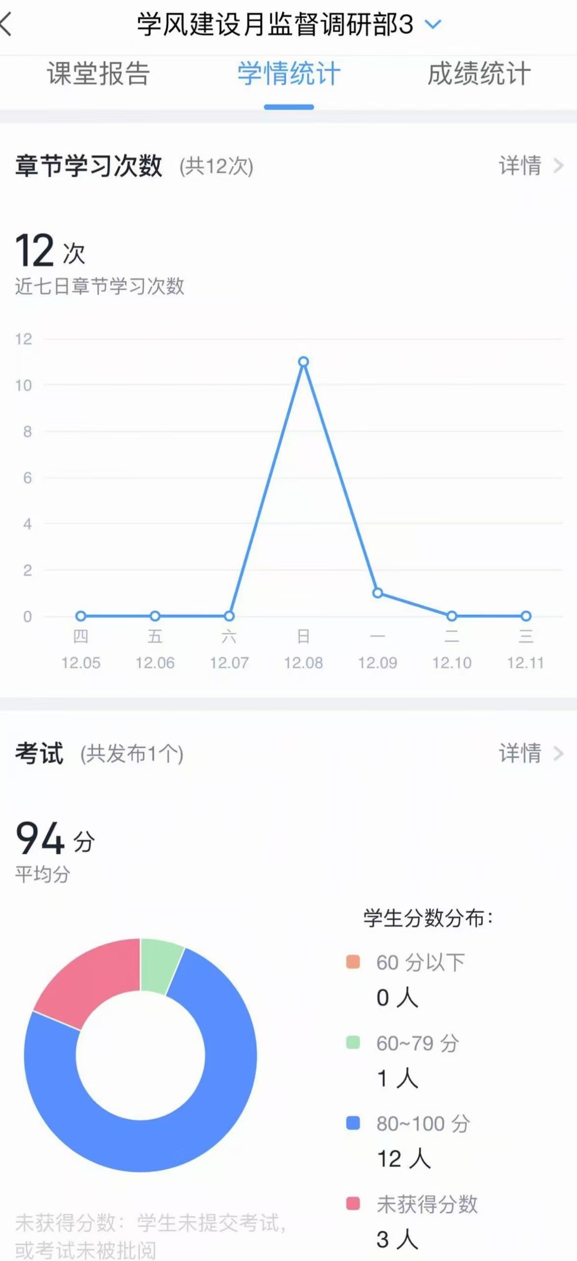 为培养同学们持之以恒的学习习惯,以督促学,12月9日至12月15日,学院学生会学生服务部举办“绳锯木断,水滴石穿”期末复习打卡活动。通过坚持每日打卡记录学习生活,养成良好学习习惯,帮助同学们专注、有规划地进行期末复习。
