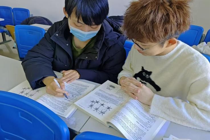 为充分发挥学生促学、求教、互助精神,展现青年学生学风担当,12月7日至12月17日,学院学生会思政研究部开展“携手共进,互助同航”期末复习互助帮扶活动。本次活动共36人参与,结成18组帮扶小组,每组由学习成绩优秀学生开展一对一帮扶,自行制定帮扶计划,在教室、自习室进行兽医微生物、动物生理学、动物生物化学等专业课程知识的辅导答疑。本次活动发扬了教学相长的精神,营造了优良学风新环境,展现了学院“同学习,共进步”的动人画面。