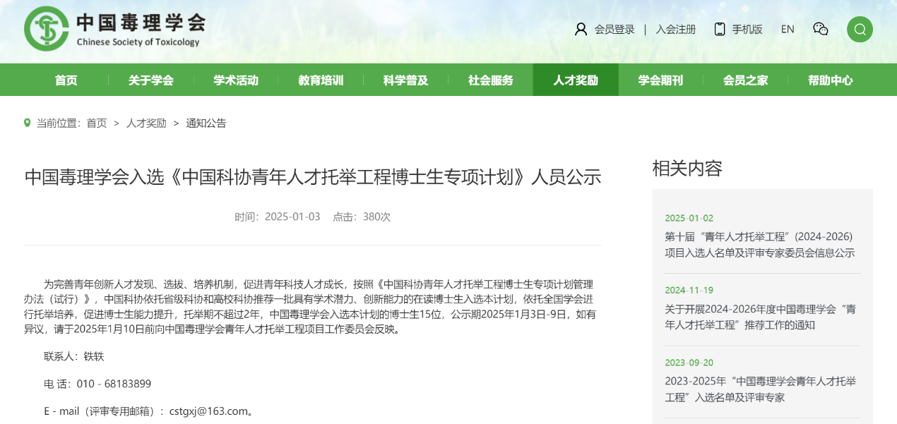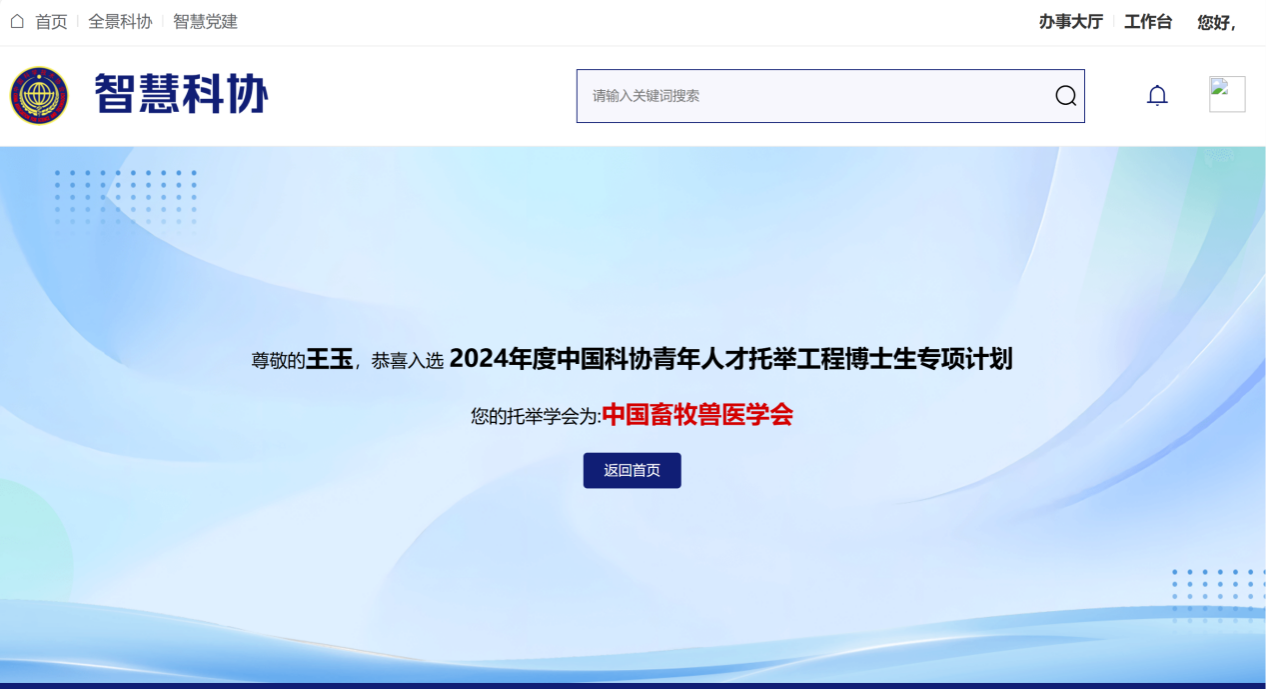根据《中国科协青年人才托举工程博士生专项计划管理办法(试行)》《中国科协办公厅关于试点开展中国科协青年人才托举工程博士生专项计划的通知》要求,中国科协于2024年9月组织实施了中国科协青年人才托举工程博士生专项计划。经过层层评选,我校必威西汉姆官网平台2023级临床兽医学博士研究生石续和2023级基础兽医学博士研究生王玉同学成功入选专项计划。