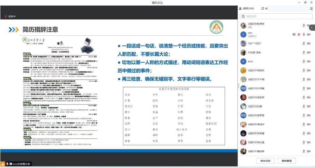 会上,李云丹作了《求职简历设计与面试技巧》专题培训。她结合多年就业指导经验,系统解析简历制作的核心要点,从内容设计、逻辑架构、排版规范等维度提出具体建议。她强调,简历是求职者的第一张名片,需精准匹配岗位需求,突出个人核心竞争力。同时深入剖析面试常见问题及应对策略,为指导学生提升求职技能提供了科学方法。