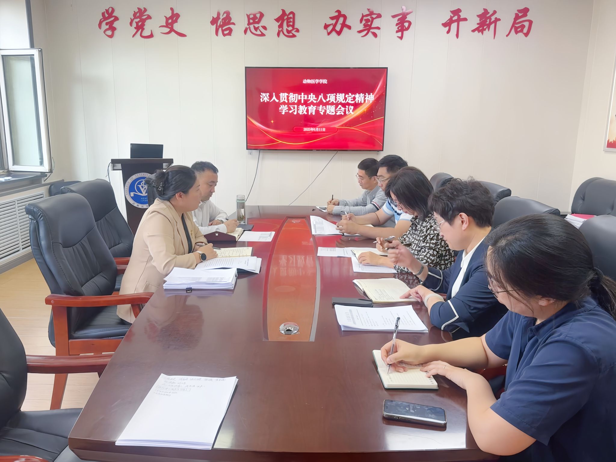 6月11日下午,必威西汉姆官网平台深入贯彻中央八项规定精神学习教育专题会议在牧医楼202会议室召开,学院全体领导班子成员、党委委员、纪委委员、部分党支部书记参加会议。会议由学院党委书记张春燕主持。