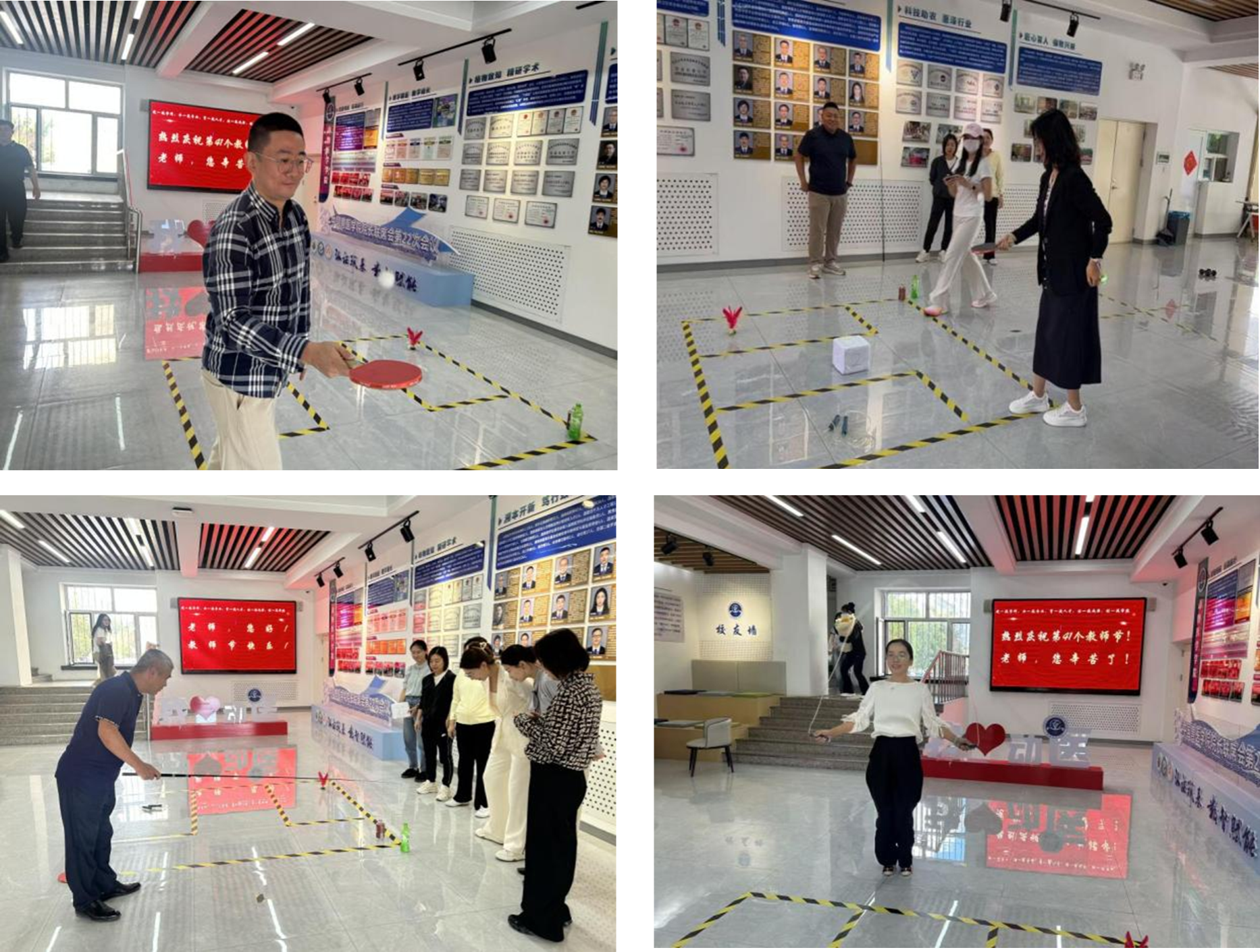 9月10日下午,学院在牧医楼举行教师节趣味活动。活动现场设计以象征 “第41个教师节” 的 “四十一” 造型格子为核心区域,围绕格子设置了哑铃、跳绳、毽子、呼啦圈、钓鱼、乒乓球等6个趣味性项目。学院教师踊跃参加,在轻松愉悦的互动中增进了彼此的交流,也让整个学院的凝聚力进一步提升,留下了众多温馨又精彩的瞬间。