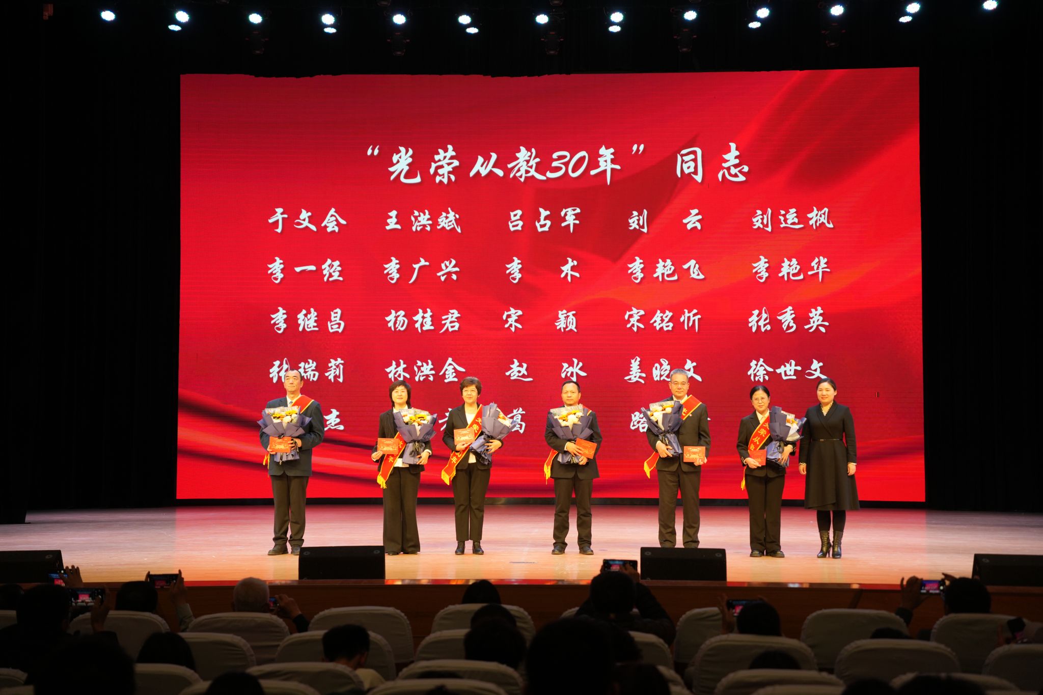 随后,大会依次表彰了“就业先进个人”“就业先进集体”“优秀共产党员”“优秀党务工作者”“先进基层党组织”等一批优秀集体和个人,并为“光荣在党30年”“光荣从教30年”教师们颁发祝福卡。