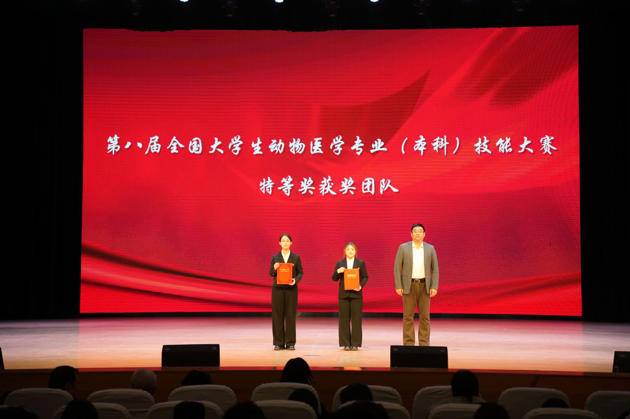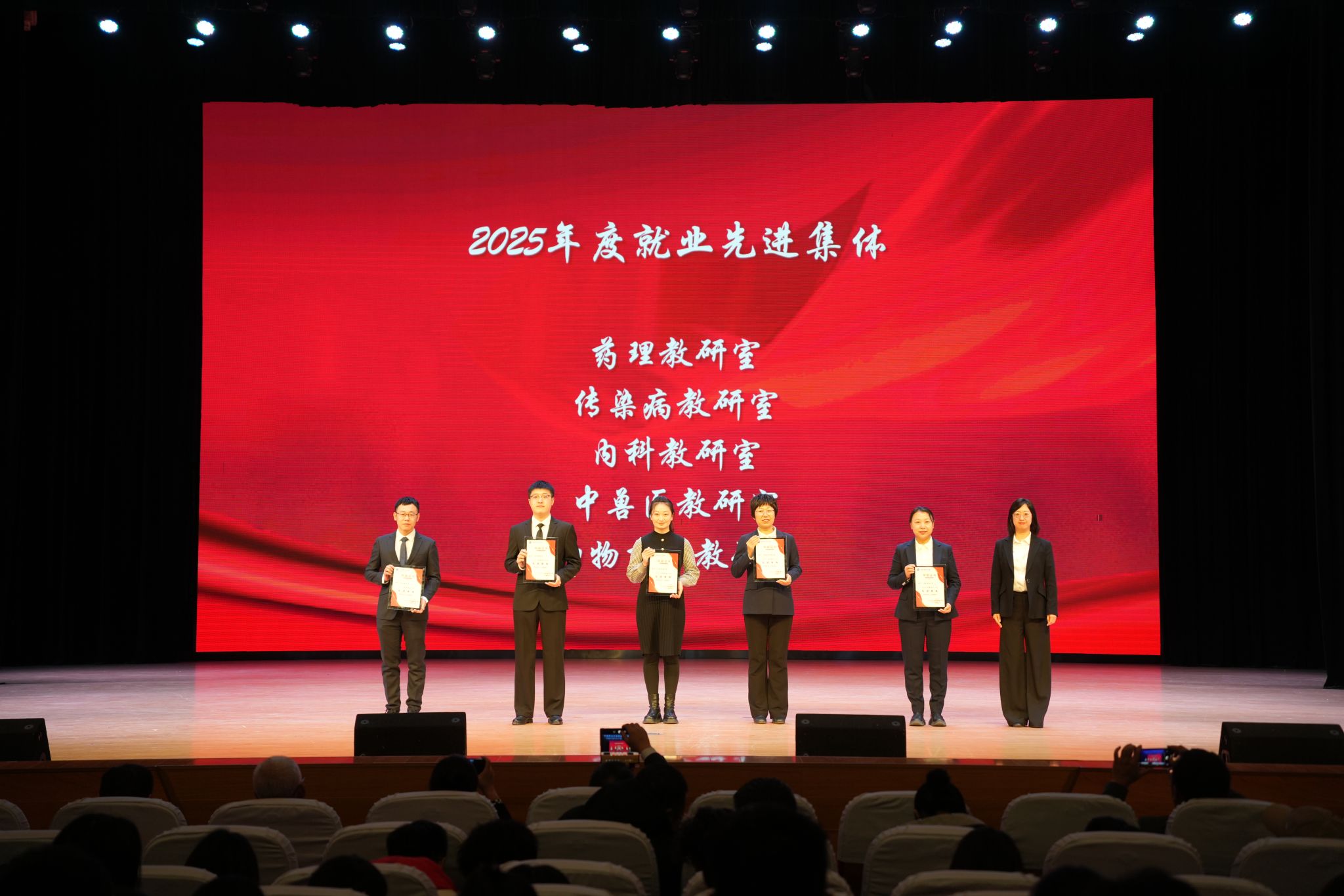 思政课后,学院举办2025年度先优表彰大会。首先对“中国国际大学生创新大赛”“第二届全国大学生职业规划大赛(就业赛道)”“第十届雄鹰杯小动物医师技能大赛”“第八届全国大学生动物医学专业(本科)技能大赛”“第十届全国大学生生命科学竞赛(科学探究类)”“第十九届挑战杯全国大学生课外学术科技作品竞赛”中的获奖学生分别授予“拓新奖”“格物奖”“奋楫奖”“进取奖”“求索奖”,并对2025年度学生竞赛优秀指导教师进行表彰。