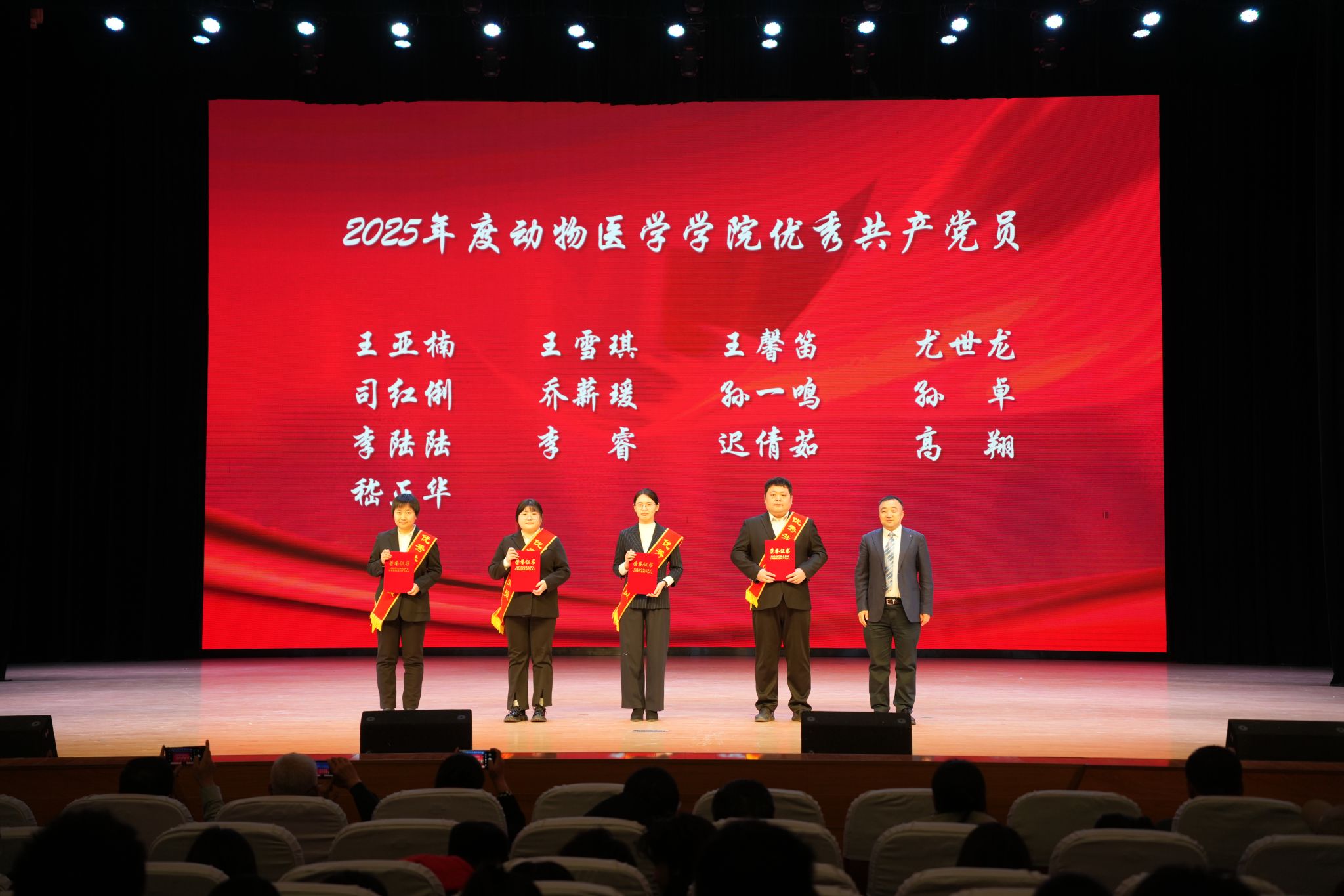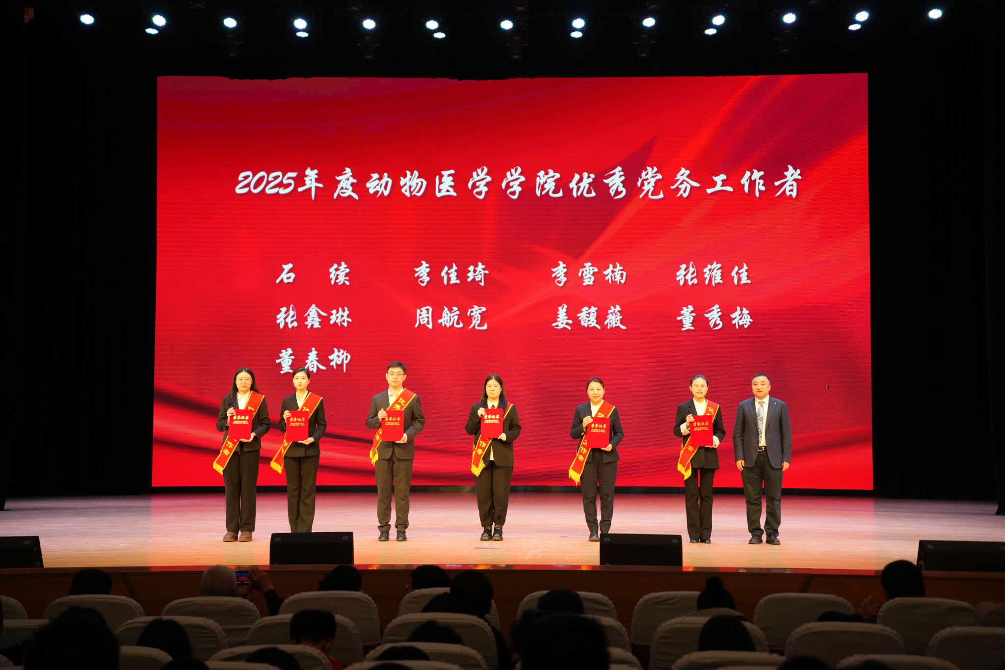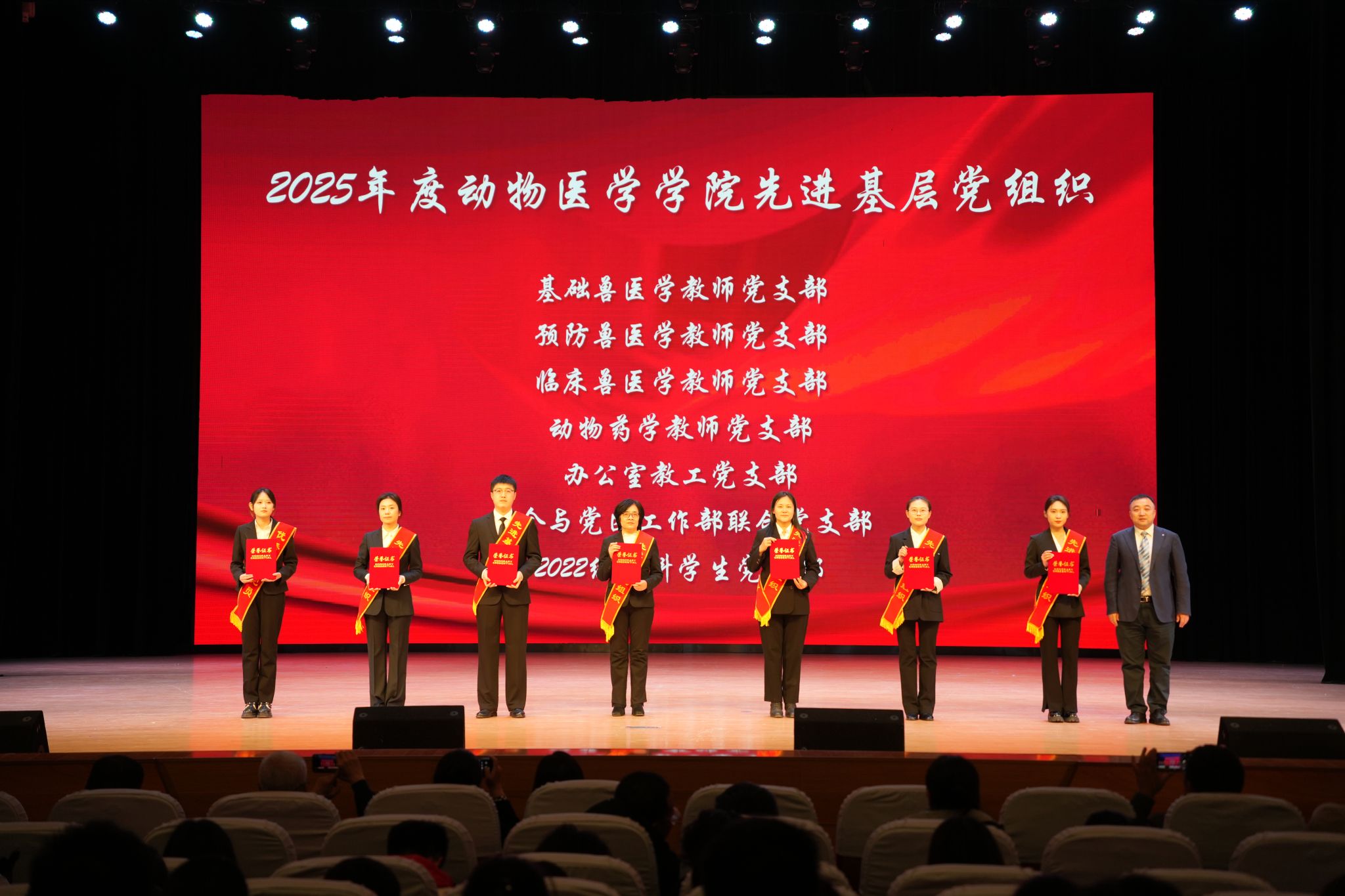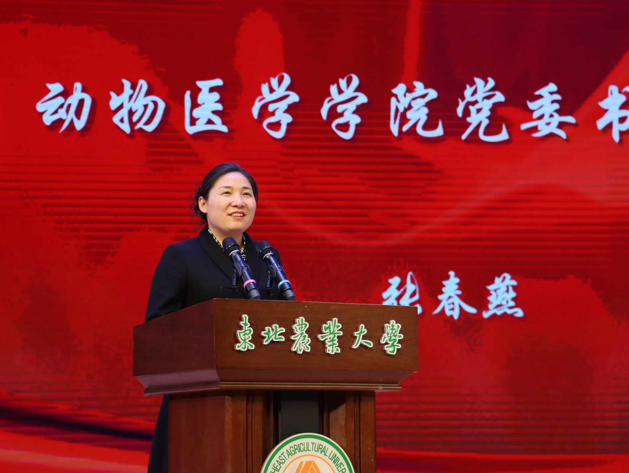 最后,学院党委书记张春燕讲话,向受表彰的先进集体和个人致以热烈祝贺,向坚守信仰的“光荣在党30年”老党员、深耕杏坛的“光荣从教30年”教师及全体师生表示衷心感谢。她强调,全院师生要以先进为榜样,铸牢政治忠诚,强化党性修养,做信念坚定的“排头兵”;聚焦立德树人,抓实就业工作,做服务学生的“暖心人”;厚植爱院情怀,凝聚集体力量,做共建共享的“实干家”。最后,她号召全院师生以此次大会为新起点,不忘初心、牢记使命,踔厉奋发、勇毅前行,奋力谱写学院高质量发展新篇章,为培养更多担当民族复兴大任的时代新人、推动兽医事业蓬勃发展作出更大贡献。