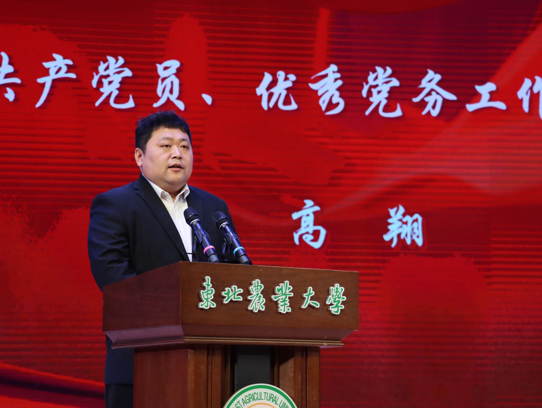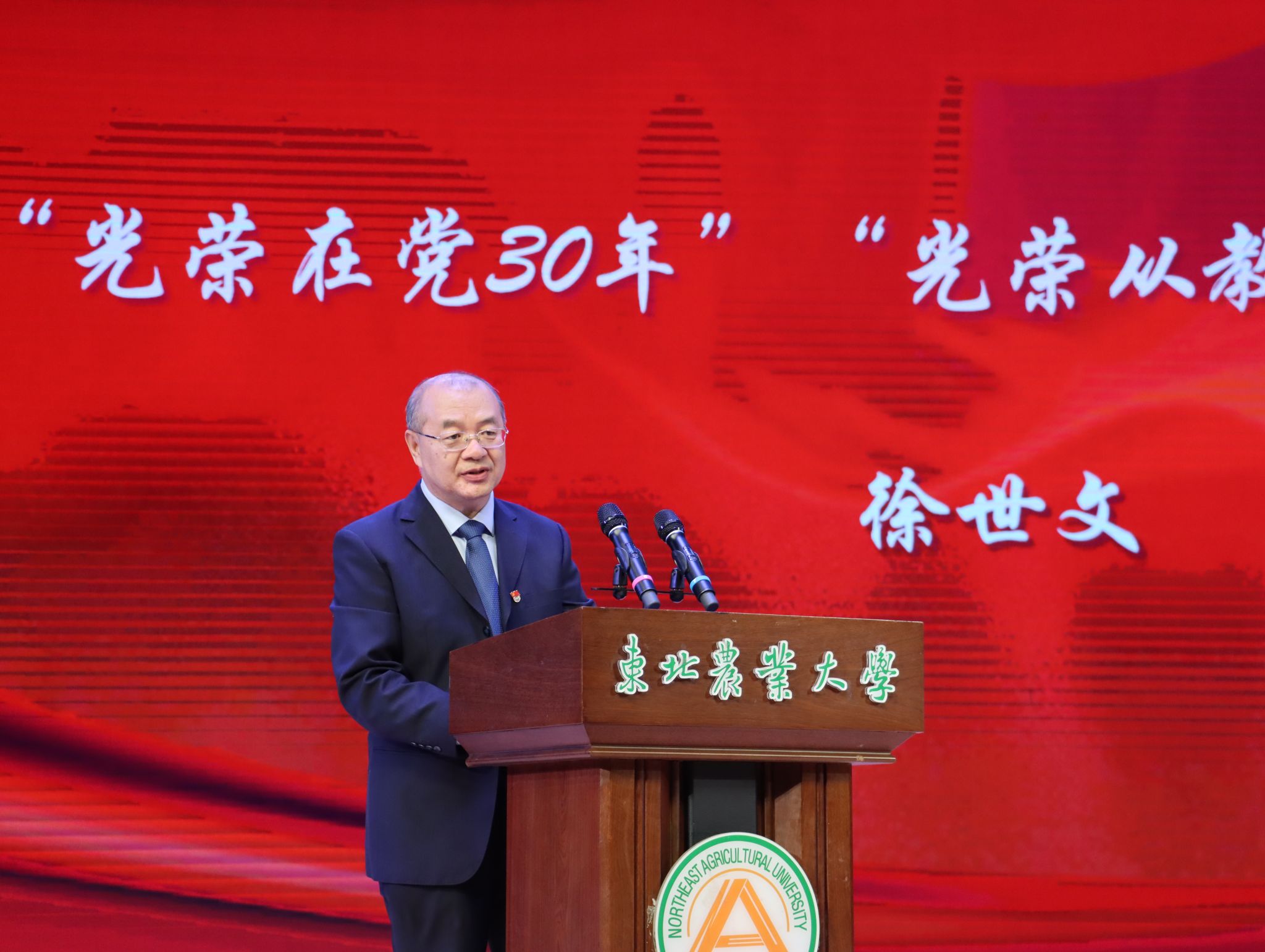 表彰结束后,三位获奖代表先后发言。优秀共产党员、优秀党务工作者代表高翔分享了作为党员教师将思政元素融入教学科研的感悟,寄语学子珍惜韶华、勇担使命;先进基层党组织代表董春柳介绍了动物药学教师党支部在党建与业务融合、人才培养与科研创新中的实践经验;“光荣在党30年”“光荣从教30年”代表徐世文结合四十年从教经历,分享了确立目标、收获友谊、握紧时间的人生心得,为青年师生传递宝贵经验。