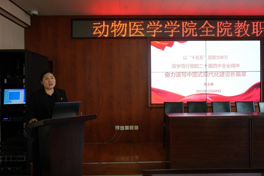 李金龙结合全会精神和《建议》内容作总结讲话。他强调,全体教职工要主动将学院发展、学科建设、人才培养置于“十五五”国家发展大局中谋划推进。要紧扣高质量发展主题,聚焦国家战略需求,着力攻克关键核心技术;要深化教育教学改革,优化人才培养体系,着力培养德才兼备、全面发展的复合型一流兽医人才;要主动对接行业需求,提升社会服务能力,为保障国家粮食安全、公共卫生安全贡献力量。学院全体教职工要以此次大会为契机,进一步提升政治站位,将学习成果转化为教学科研的实际行动,将纪律规矩意识融入教育教学和管理服务全过程,对照全会部署的目标任务,明确自身定位,制定落实方案,确保全会精神在学院各项工作中落地生根。