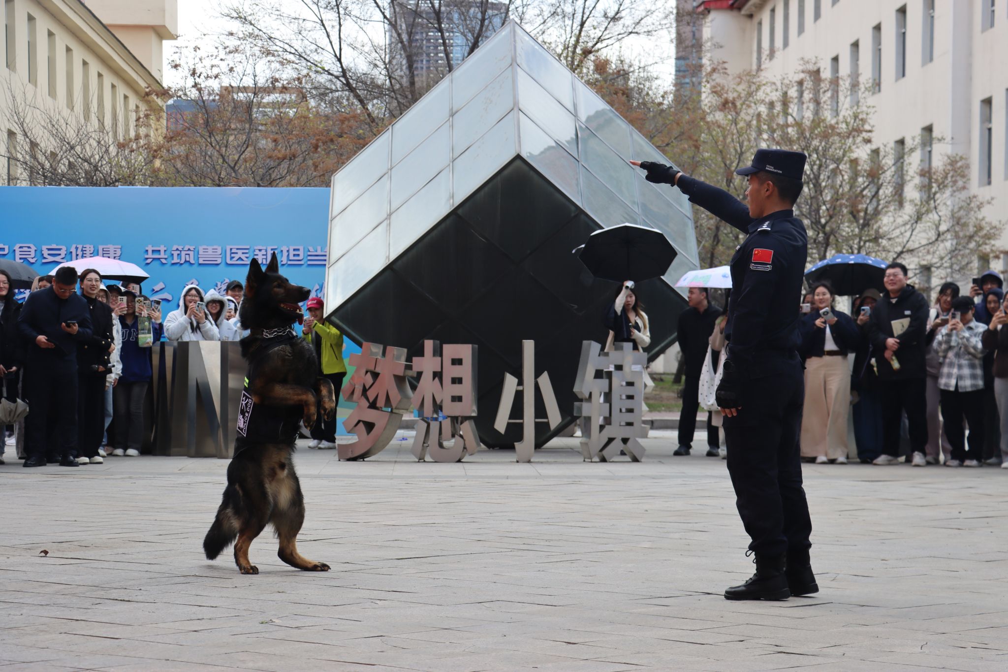 4月22日下午,文化节正式拉开帷幕。学院携手哈尔滨警犬训练基地,在开幕式上呈现了精彩的警犬表演。警犬依次完成服从展示、障碍穿越和搜索演练等实战科目,赢得现场观众阵阵掌声。