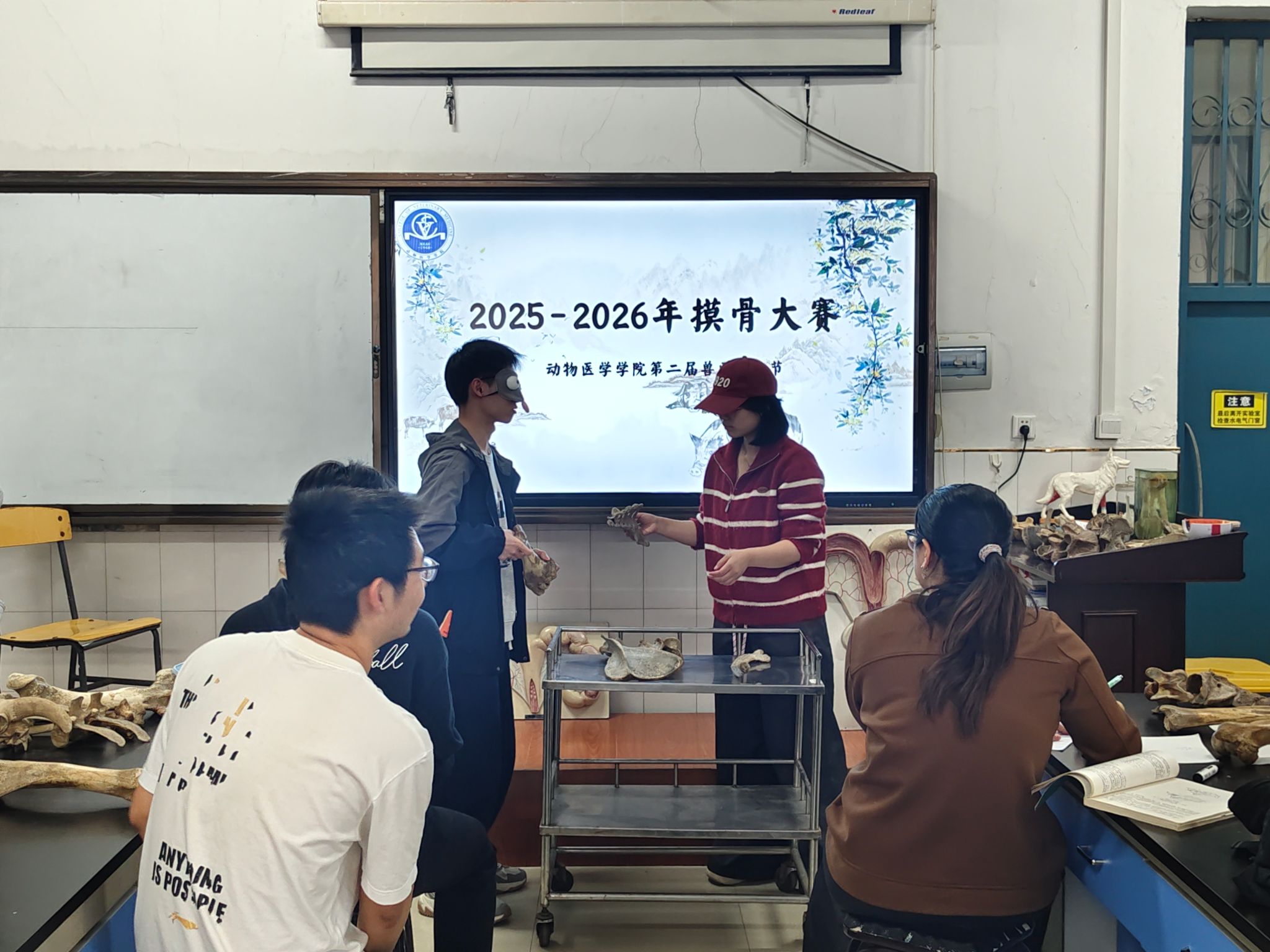 文化节期间,学院举办了系列专业赛事。知识竞赛围绕兽医病理、药理、传染病等核心课程展开激烈比拼;摸骨大赛要求选手在蒙眼状态下准确辨识骨骼结构与所属动物;涂色大赛则以解剖图谱为基础,考察学生对器官形态与空间关系的掌握。各项赛事将理论知识与实际操作深度融合,有效提升了学生的专业素养与临床思维。