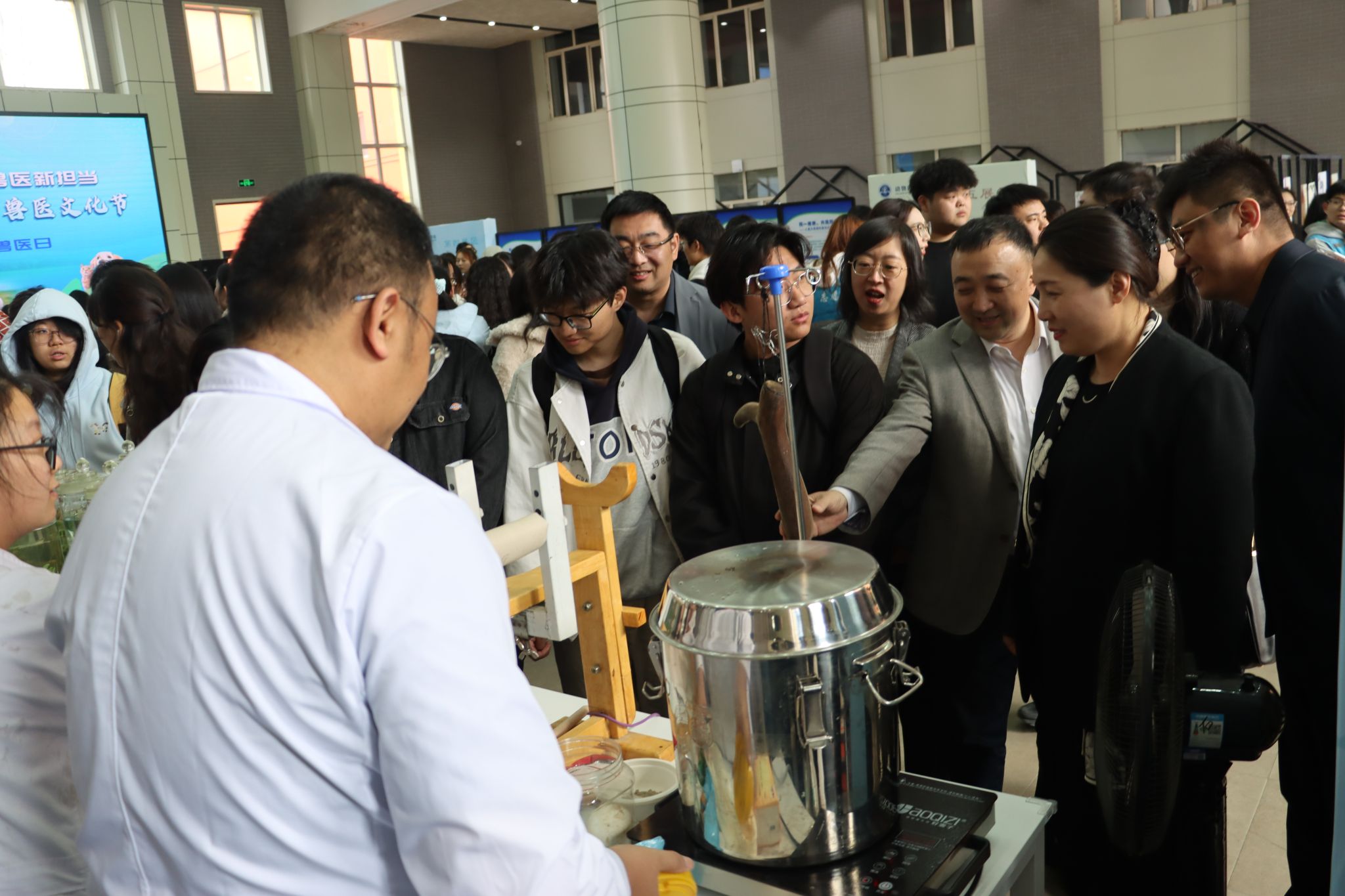 为迎接第26个世界兽医日,4月22日至25日,必威西汉姆官网平台在梦想小镇西侧广场及中庭举办“守护食安健康·共筑兽医新担当”第二届兽医文化节。本次活动旨在厚植学生专业认同,强化实践能力与职业素养,引导青年学子树立医者仁心、守护生命的责任担当,同时向校内外展现学院学科特色、育人成果与行业使命,进一步弘扬兽医文化。活动融合专业展示、科普教育、实践互动与志愿服务,吸引了近千名师生及周边社区居民参与。