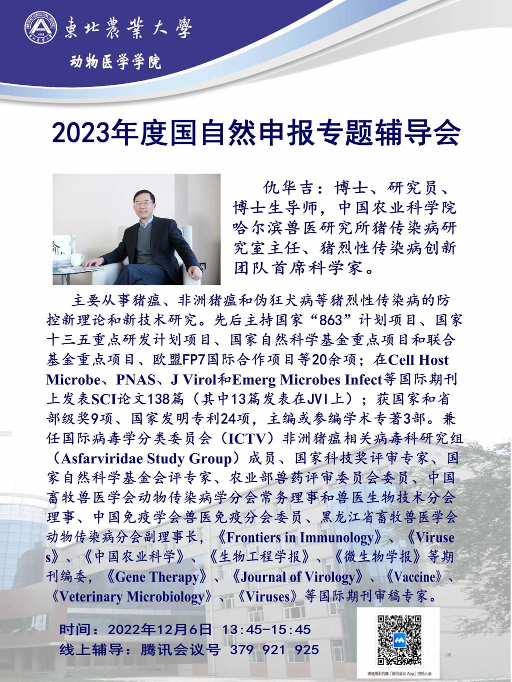 仇华吉:博士、研究员博士生导师,中国农业科学院哈尔滨兽医研究所猪传染病研究室主任、猪烈性传染病创新团队首席科学家。