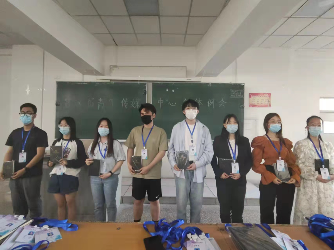 最后,侯主席向各部部长颁发工作牌以及纪念品,各部门部长向部门副部,干事颁发工作牌和纪念品。部长,部门间进行留影纪念。动医青年传媒中心指导老师周航宽带领青媒全体人员到主楼下留影纪念。