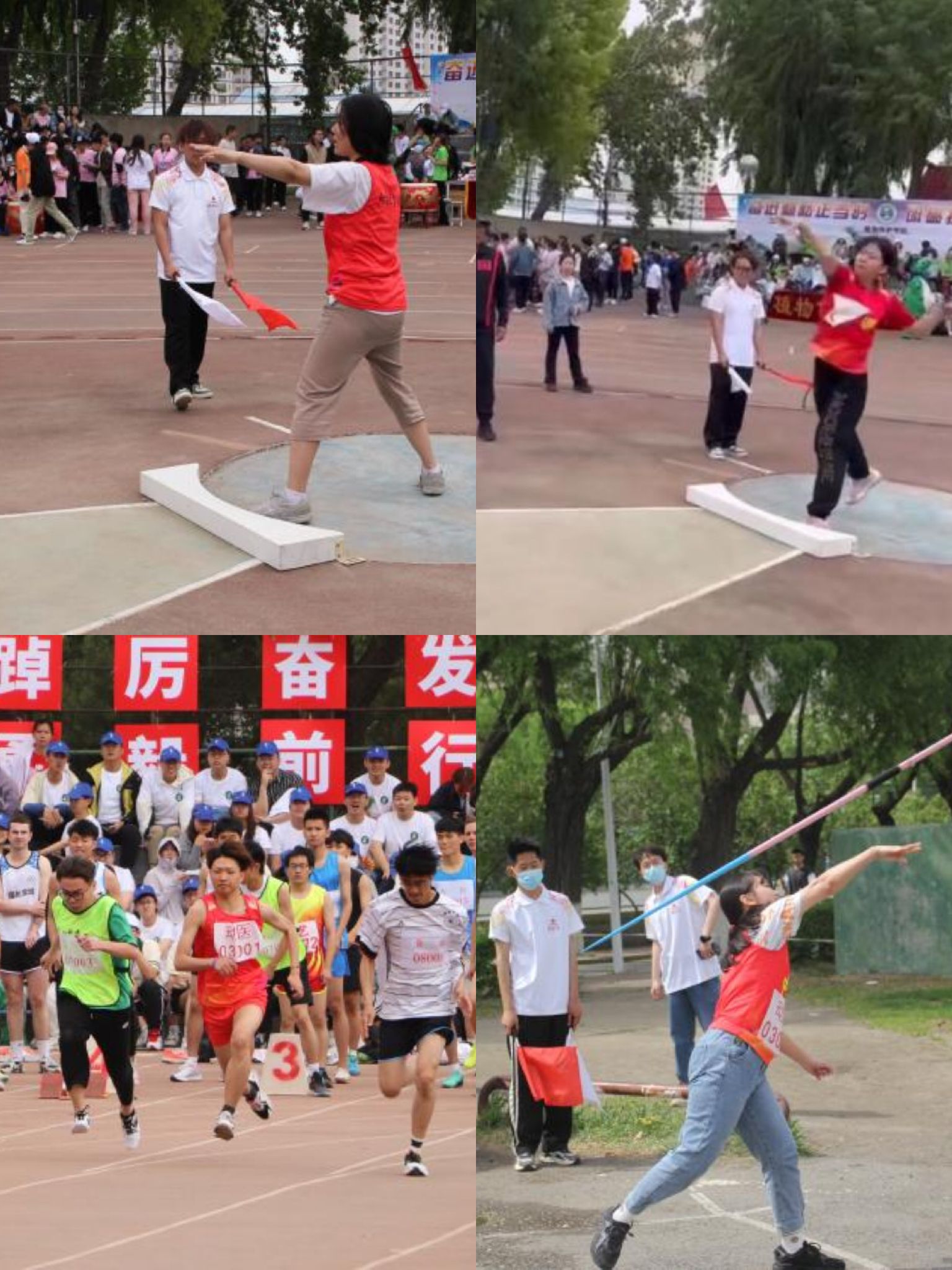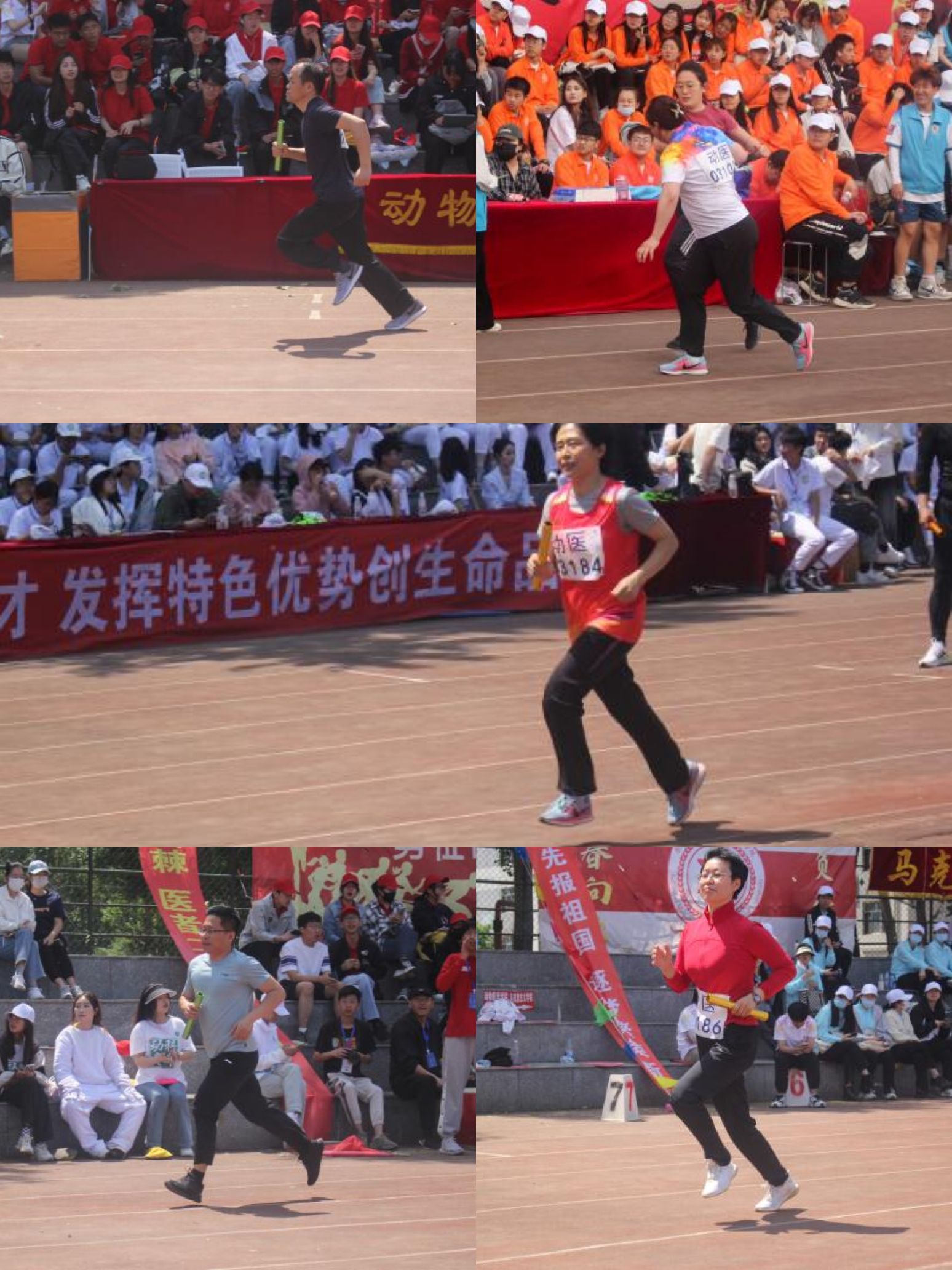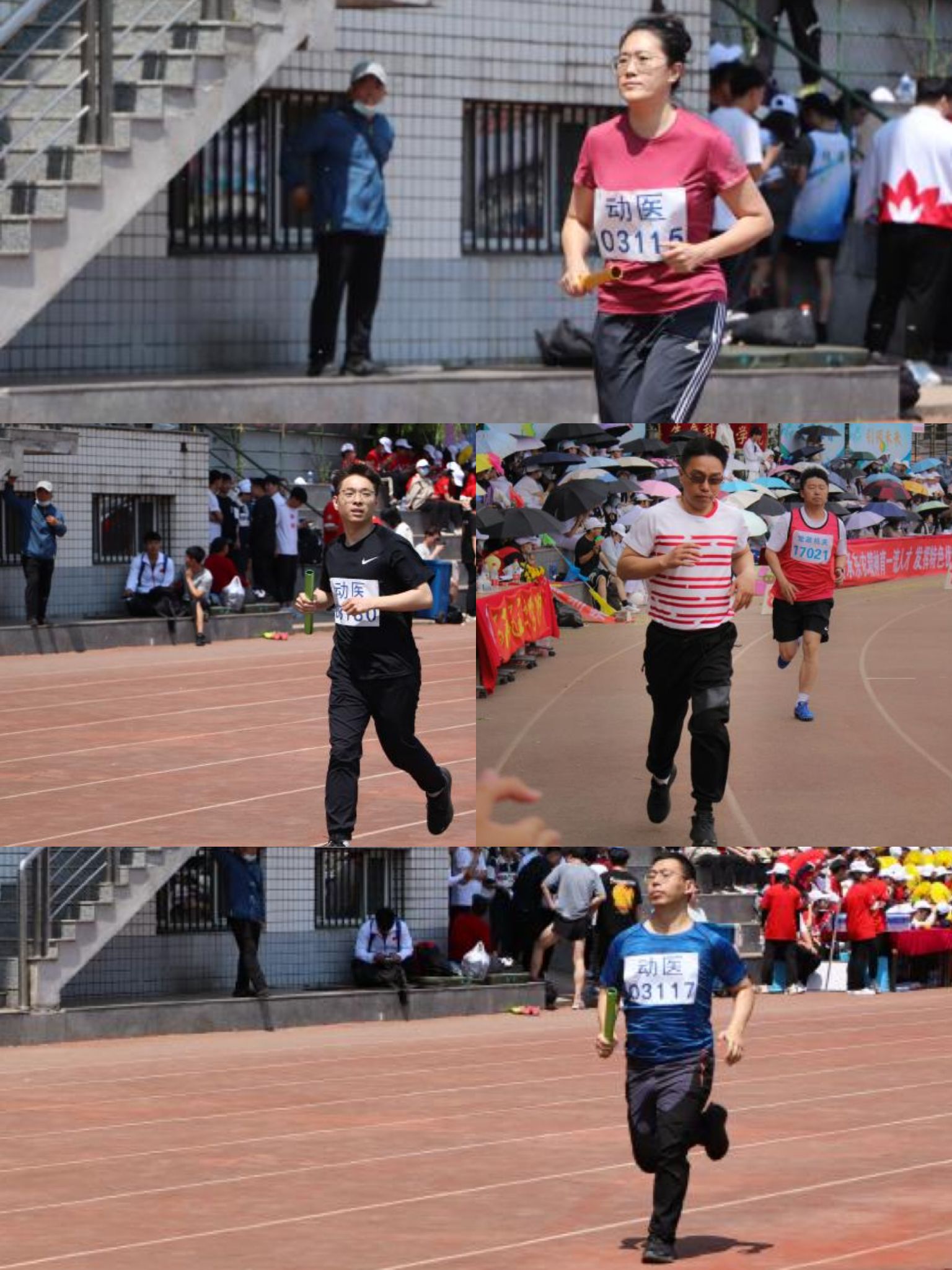 动医学院的运动员们更是不甘示弱,在赛场上,他们挥洒汗水,豪气直冲云霄。他们可喜的成绩,是每一个清晨不知疲倦的练习所换来的。学院老师们积极参与比赛荣获教工组女子团体第五名,其中青女4*400第三、中女跳远第三、青女标枪第三第四、中女4*100第四、中男400第四、青女铁饼第四、中女铁饼第四、中女标枪第五第六、中女铅球第五第六、青男4*400第六、青女4*100第七、青男4*100第八。