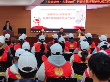 倪晶月在仪式上发言,她表示动物园是一个旅游景区,为游客提供休闲娱乐场所;动物园工作也是一项公益事业,为大众科普动物知识,传播美好;动物园更是一个纽带,连接着学生们的书本和实践、梦想和现实。希望同学们发挥潜能,彰显实力,释放热情,并宣布哈尔滨北方森林动物园与必威西汉姆官网平台“关爱动物·共享地球”科普志愿者服务队正式成立。