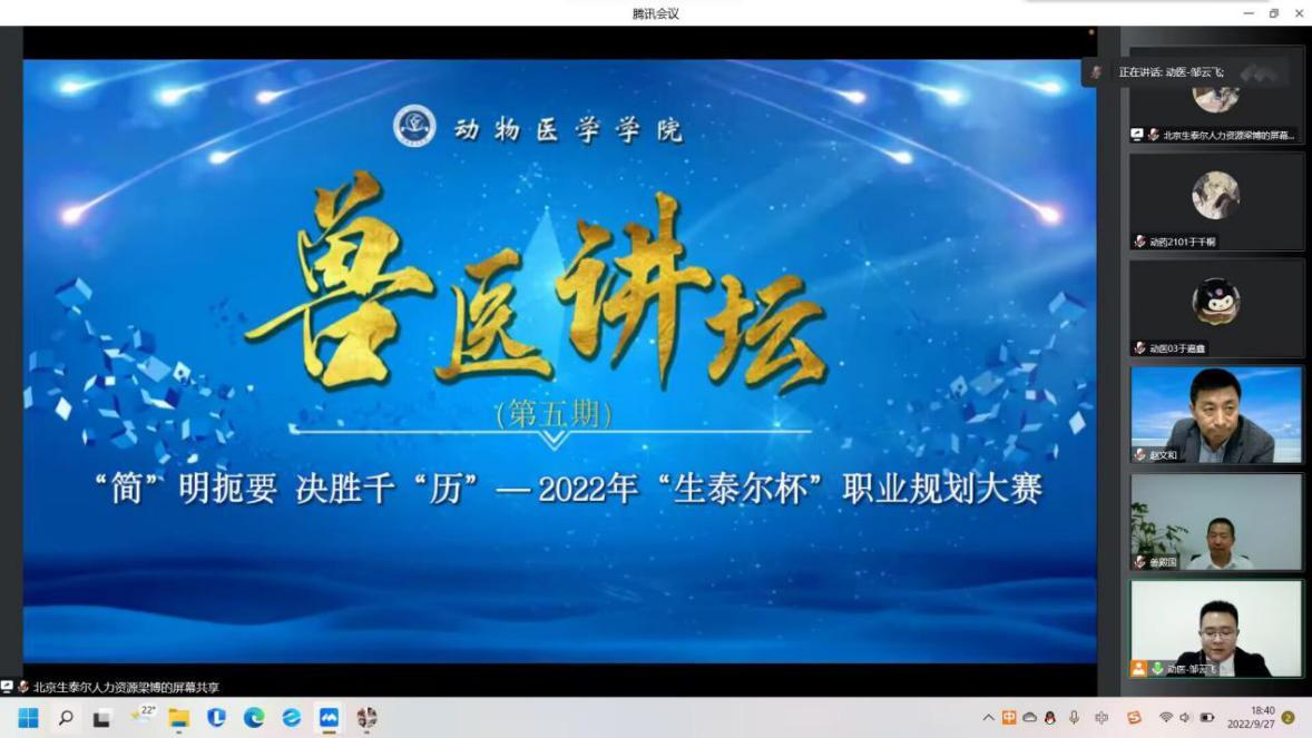 为提高人才培养与社会需求的契合度,促进校企bw必威,凝聚协同育人的各方力量,帮助学生树立正确的就业观职业观。9月27日,必威西汉姆官网平台联合北京生泰尔科技股份有限公司举办2022年“生泰尔杯”职业规划大赛暨第五期兽医讲坛。公司人力资源中心副总裁姜殿国、校企合作主管梁博、学院党委副书记赵文和、全体辅导员、本科生和研究生各年级代表参加本次讲坛。讲坛由学院团委负责人邹云飞主持。