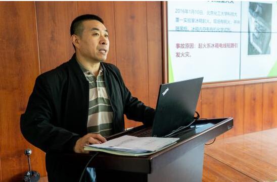 随后张艳国为同学们作了题为“居安思危、思则有备、备则无患”的报告,分享了典型事故案例和视频,介绍了健康安全体系、气体钢瓶安全和危险废弃物安全处理等知识要点,分析了安全事故的潜在征兆和发生原因。