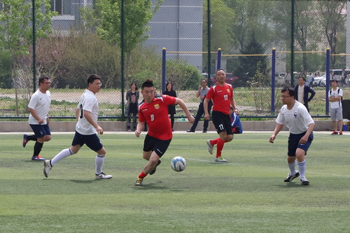 5月17日学校教工七人制足球决赛阶段在南区足球场拉开帷幕。开始与生命学院进行三四名之争。随着主裁判的一声哨响,阵容对双方学院早已没有秘密可言,比赛直接进入白热化。场上选手你追我赶,你攻我防;进攻杀气腾腾,防守步步为营。我院“中场发动机”宋铭忻教授,从速度和脚法上完全看不出已经是50多岁的人,作为场上灵魂人物,他多次组织出具有威胁的进攻。虽然双方互有攻守,但上半场双方学院以0:0打成平手。下半场比赛愈发紧张激烈,场上队员配合默契,防守、传球、停球、断球,动作利落干脆。正当比赛进入尾声阶段,生命学院利用一次快速反击,将比分改写,随即裁判终止比赛。最终,我院足球队以0:1遗憾痛失季军,获得第四名。