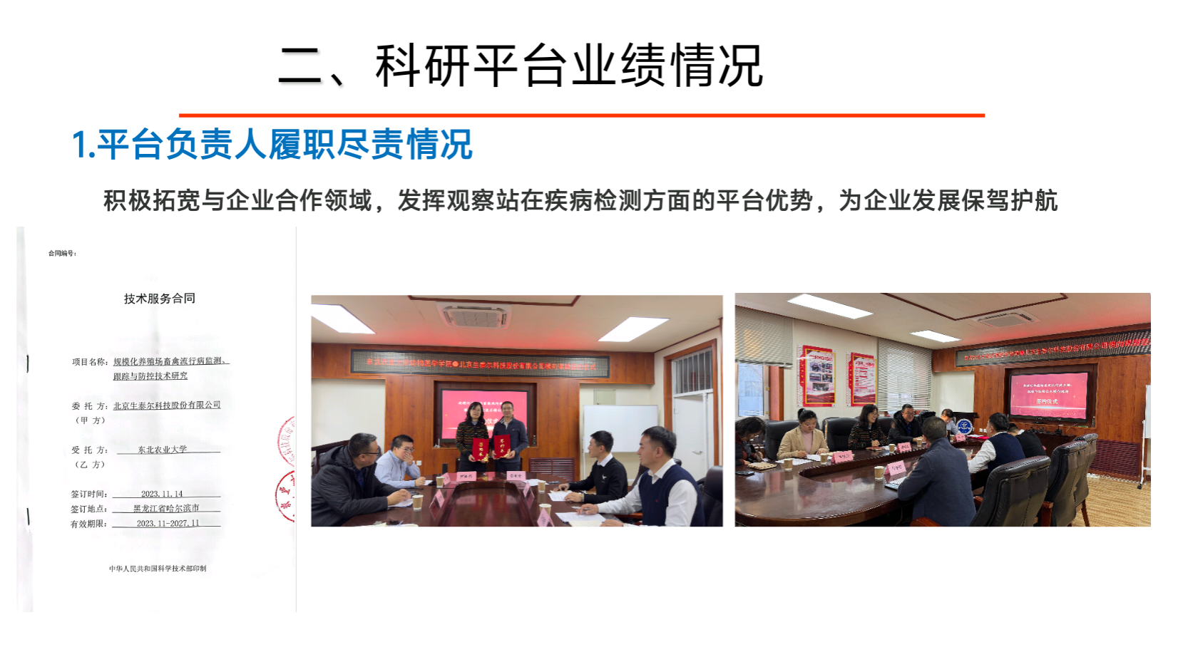 实验室创新工作、效果作用及转化情况:加强技术推广与示范,在东北地区动物疫病防控方面起到了引领作用;提高实验站项目的质量效益,突破生产共性和关键技术瓶颈,着力市场需要的研发诊断与检测技术,促进科研成果的转化;增强人才队伍培养,利用观测站现有资源,为动物疫病防治领域输出源源不断的科技力量。