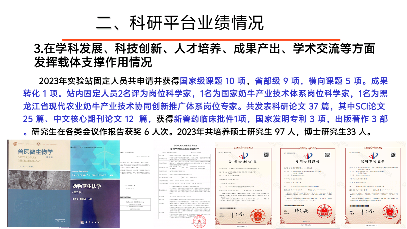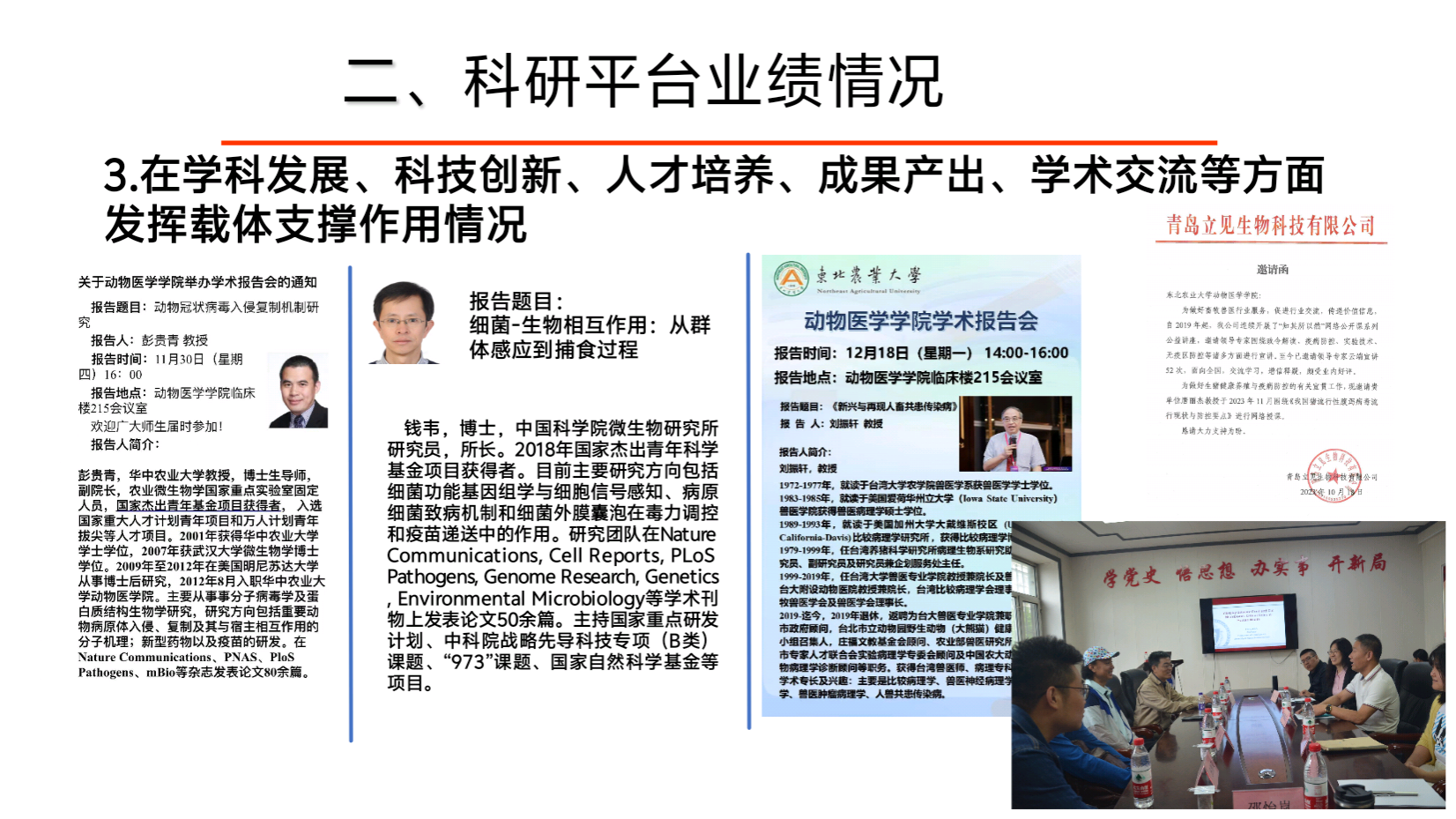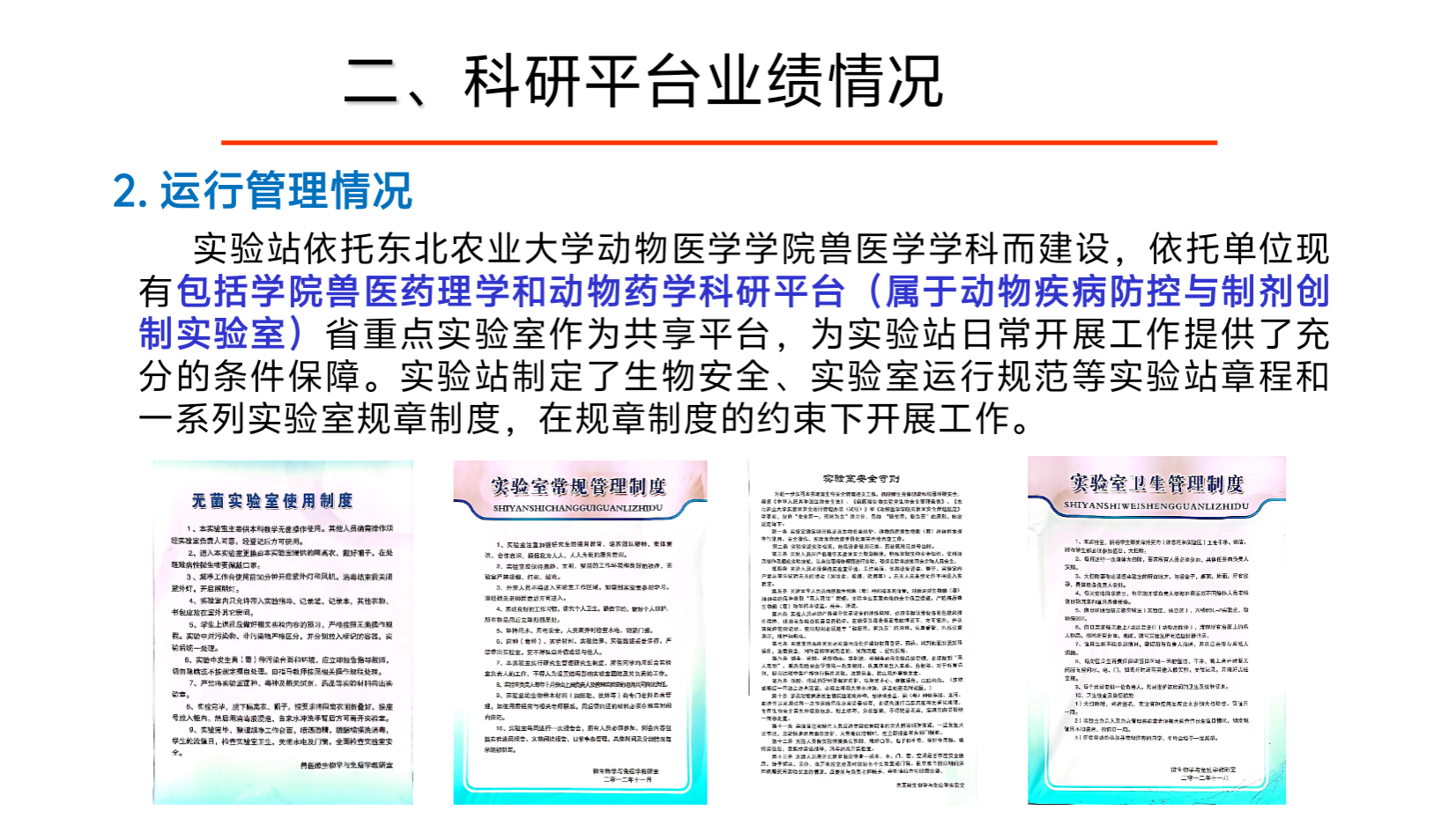 农业农村部动物疫病病原生物学学科群东北科学观测实验站于2016年获农业农村部批准,依托bw必威西汉姆联基础兽医学国家重点学科、临床兽医学国家重点(培育)学科和预防兽医学省重点学科建立。