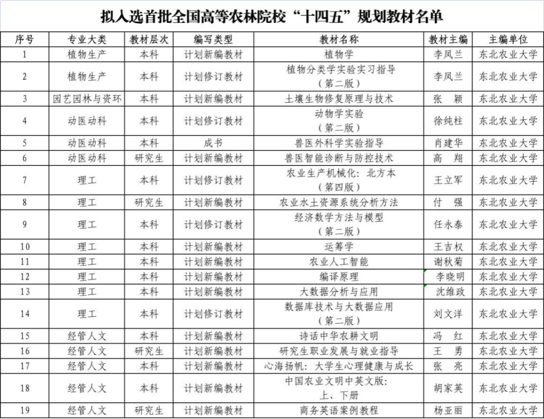 据悉中国农学会开展全国高等农林院校“十四五”规划教材建设工作,围绕增强广大农林学子的知农爱农情怀、强农兴农本领,面向国家战略性新兴产业和未来产业需求,聚焦推动乡村全面振兴、保障粮食安全、解决农业“卡脖子”技术等“三农”重点工作任务,以耕读教育、农业通识教育、公共基础课及现代农业新技术领域的专业课教材为重点,着力打造适应农林新产业新业态发展,具有科学性、时代性和前沿性的高水平教材,建立健全具有农科特色的高质量教材体系。