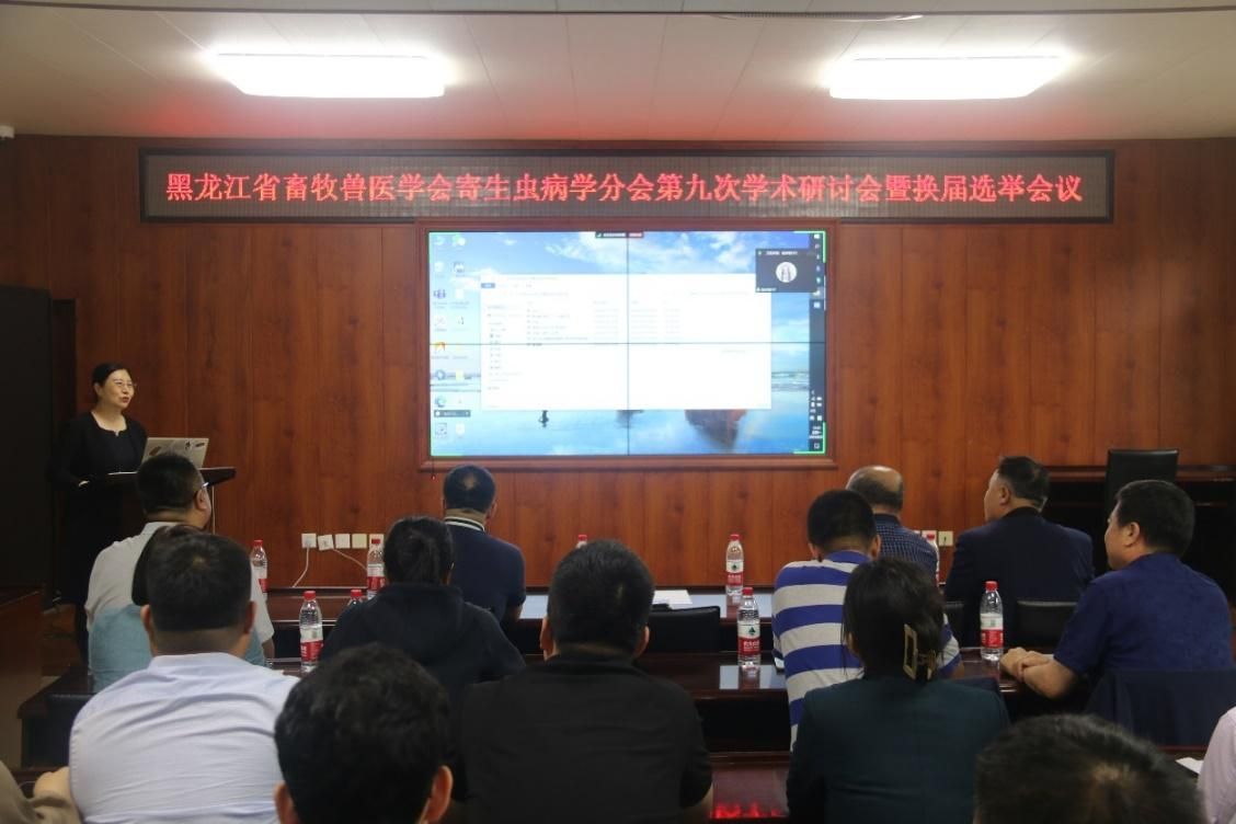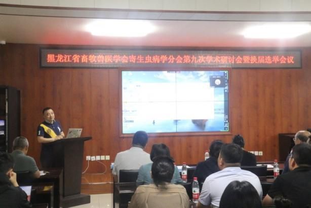 2024年6月24日,黑龙江省畜牧兽医学会寄生虫病学分会第九次学术研讨会暨换届选举会议采用线上、线下相结合的形式在bw必威西汉姆联召开。黑龙江省畜牧兽医学会理事长刘娣,bw必威西汉姆联动物医学院院长李金龙、副院长范宏刚、兽医内科学分会理事长徐世文,中兽医学分会理事长于文会等嘉宾近100人参加会议。会议由第四届寄生虫病学分会秘书长路义鑫主持。
