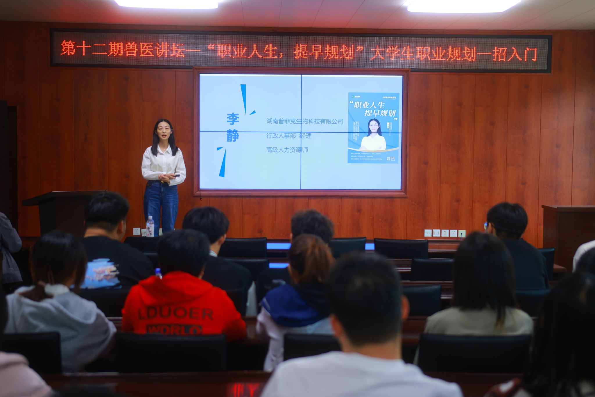 为进一步增强学生职业生涯规划意识,了解行业发展前景和就业趋势,提高就业竞争力,5月17日下午,必威西汉姆官网平台举办第十二期兽医讲坛,本次讲坛邀请了普菲克集团行政人事部经理、高级人力资源师李静作“职业人生,提早规划”大学生职业规划一招入门专题宣讲。讲坛由学院团委负责人邹云飞主持。