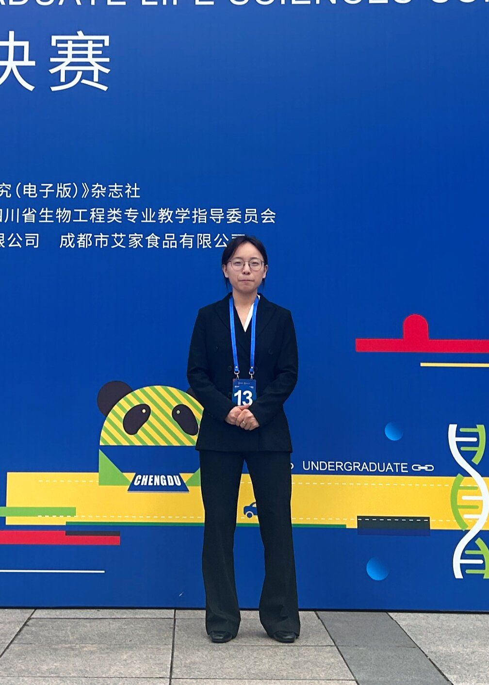 她始终坚持将学术作为自己最重要的使命之一。作为动物医学专业的学生,她深知该领域对社会、对保障食品安全有着深远的影响,因此始终关注学科前沿。学校的实验室开放交流项目犹如一颗种子,在我的科研之路上萌芽生长。正是从参与这个项目开始,我正式踏上了漫长而充满挑战的科研征程,如同一位无畏的探索者,怀揣着对未知的好奇与热忱,向着科研进发。在后续的发展中,她在第十八届“挑战杯”全国大学生课外学术科技作品竞赛校级选拔赛获一等奖、黑龙江省第七届“知识产权杯”高校发明创新竞赛中获三等奖,这些成绩不仅是对她学术创新能力的认可,也为她今后的科研道路积累了宝贵的经验。此后,她在第九届全国大学生生命科学竞赛(创新创业类)、第九届全国大学生生命科学竞赛(科学探究类)中获一等奖。
