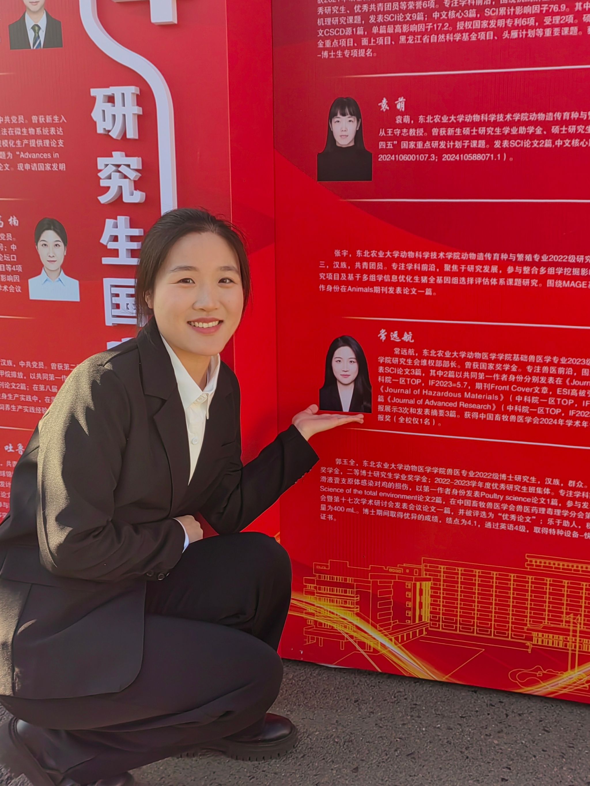 常远航,女,汉族,2002年6月出生,共青团员,必威西汉姆官网平台基础兽医学专业2023级硕士研究生,现任必威西汉姆官网平台研究生会维权部部长。曾获国家奖学金,硕士研究生一等学业奖学金,“优秀共青团员”称号。专注兽医前沿,围绕动物中毒病的发病机制与防控技术,以共同第一作者发表SCI论文3篇,参与发表SCI论文1篇,并且以共同第一作者发表的其中一篇论文在《Journal of Agricultural and Food Chemistry》(农林科学领域一区TOP期刊)作为杂志封面文章发表,同时被ESI高被引收录。参加国际学术会议1次,国内学术会议3次,并均进行了壁报展示,其中2次获得优秀壁报奖。在中国畜牧兽医学会2024年学术年会中申请到免费参会的机会并获得优秀壁报奖,全校仅一人获得。
