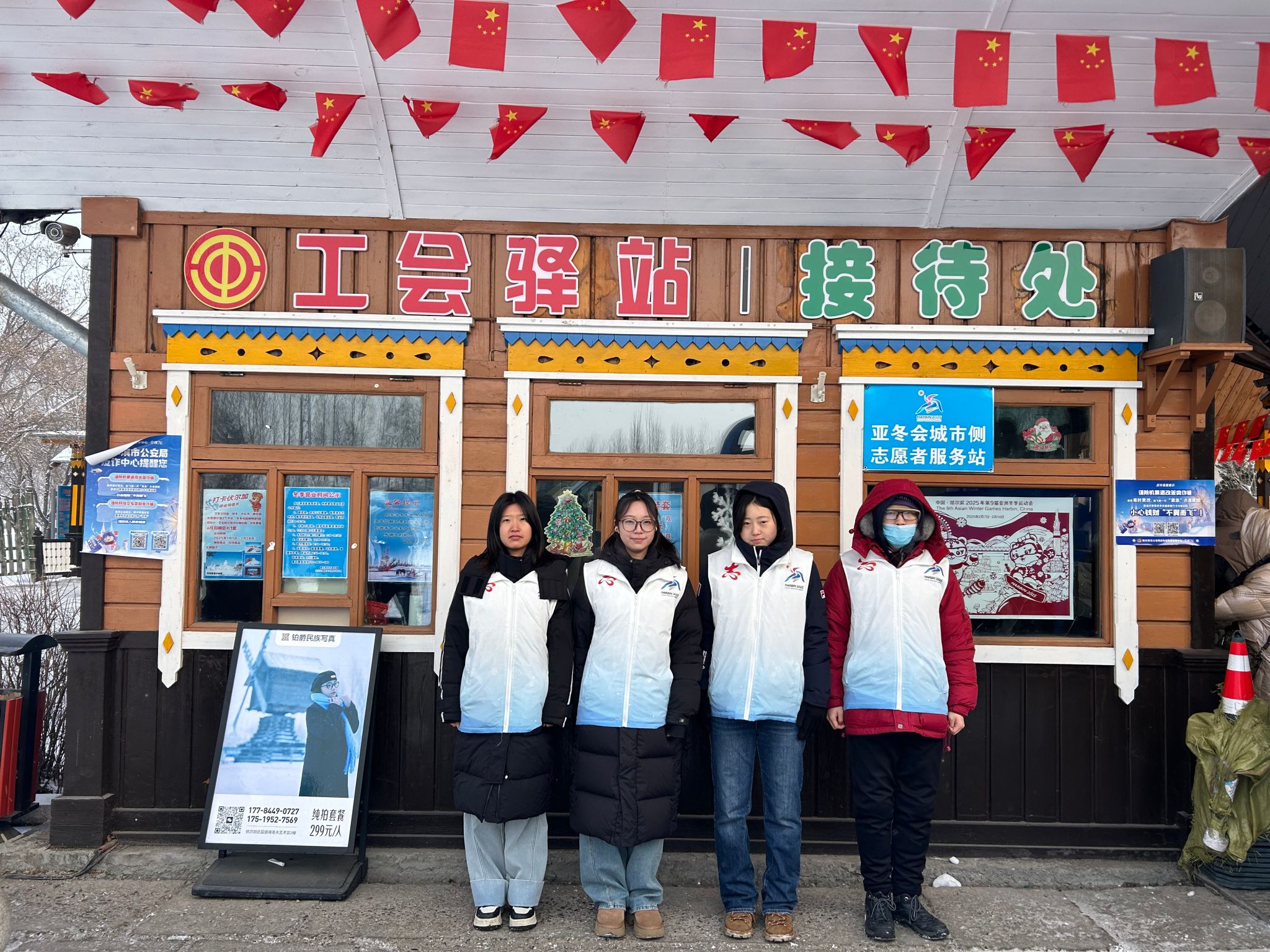 青春铁路线志愿活动结束后,霸奂文又响应社区号召,前往黑龙江省博物馆和香坊万达城市侧志愿者点位,与其他高校志愿者一同为游客提供咨询、引导服务,还为环卫工人、执勤民警提供热水、充电宝,传递温暖与关怀。