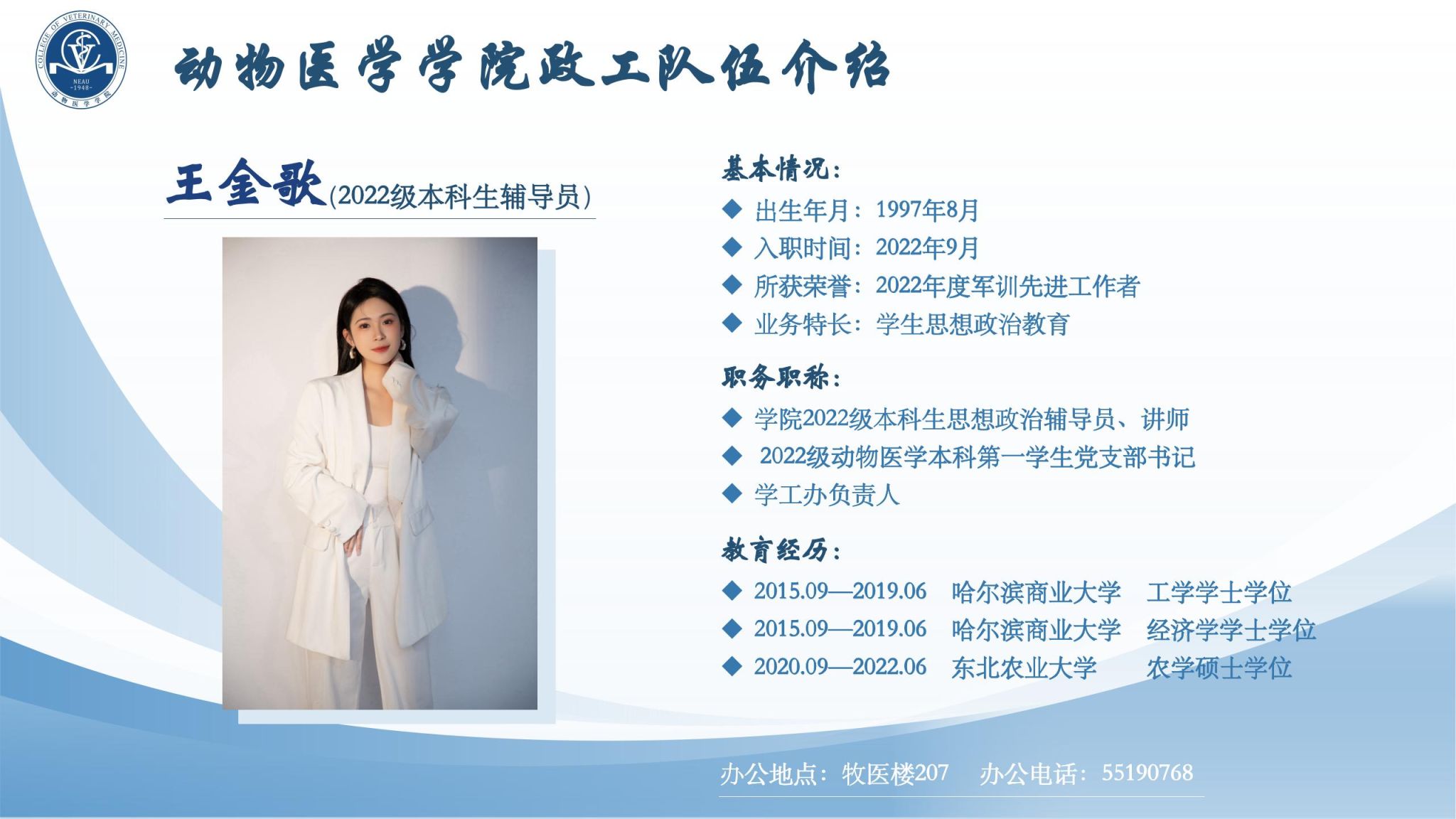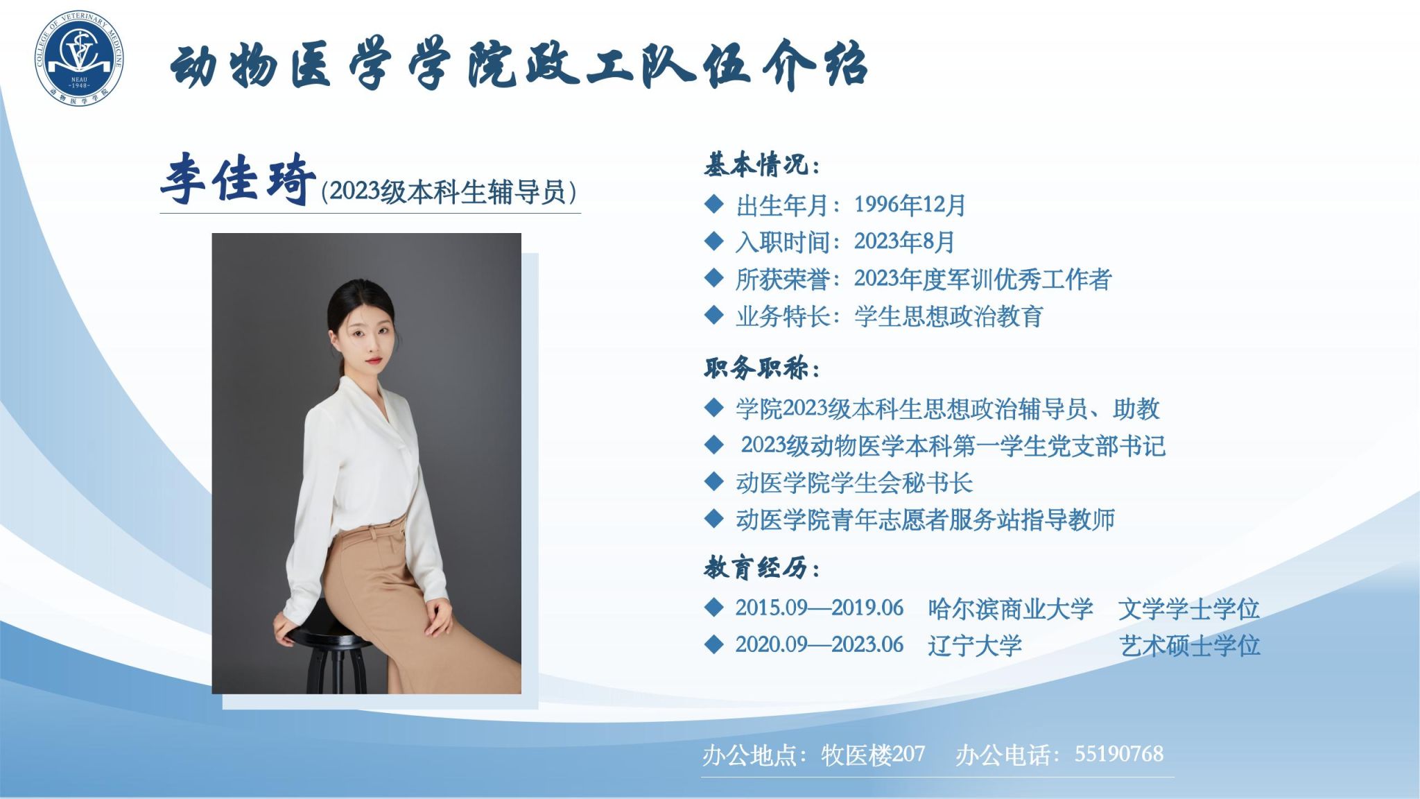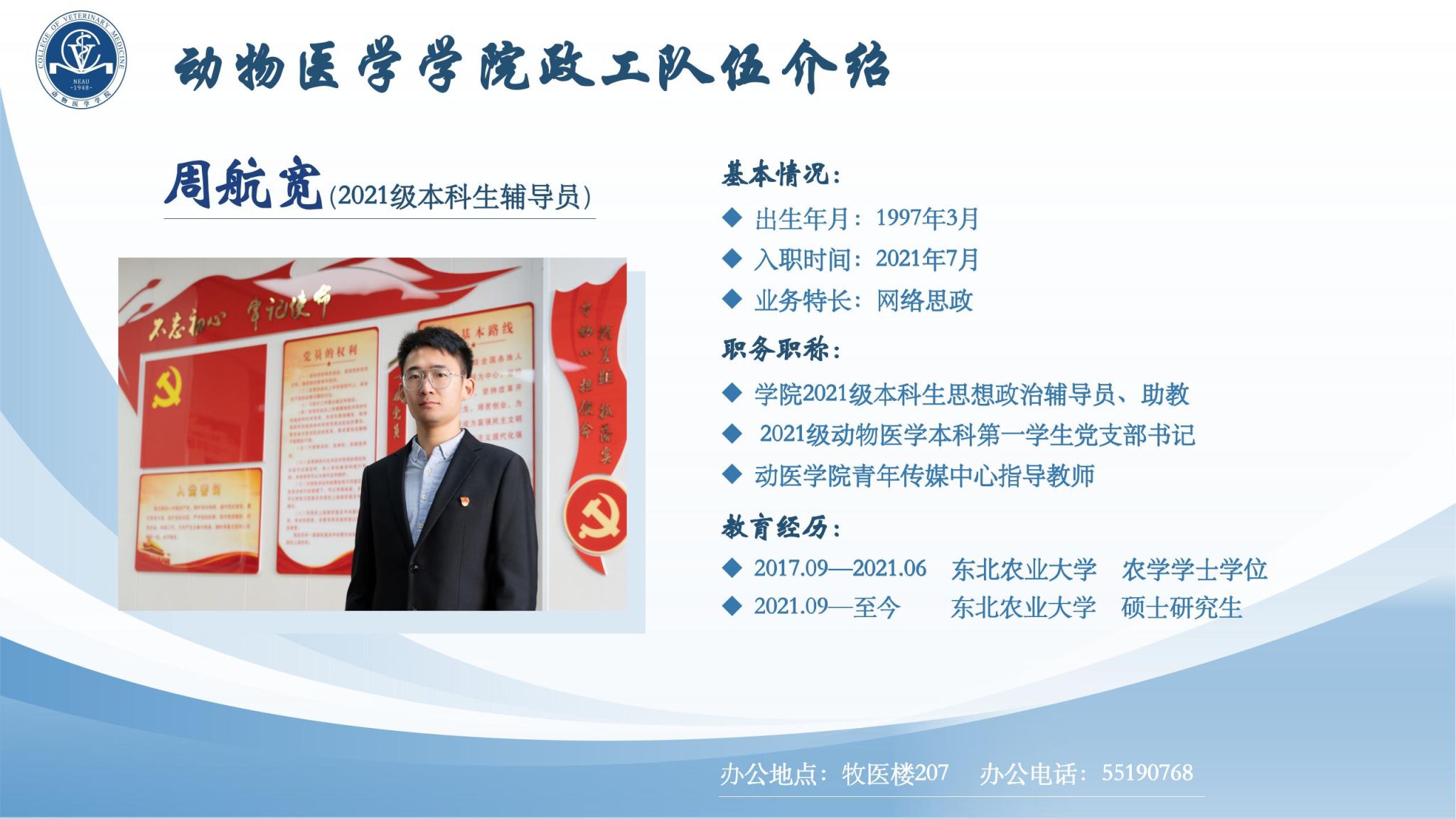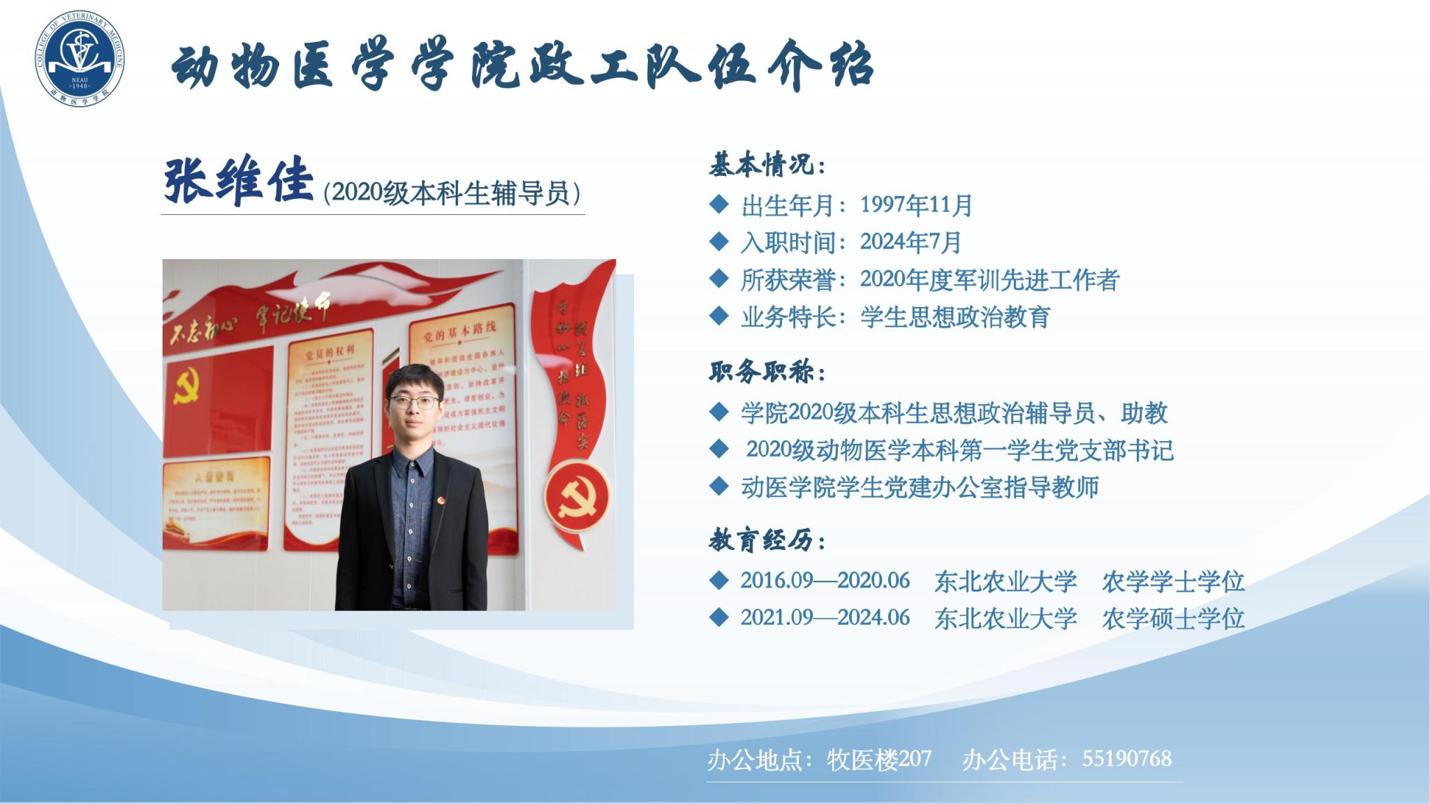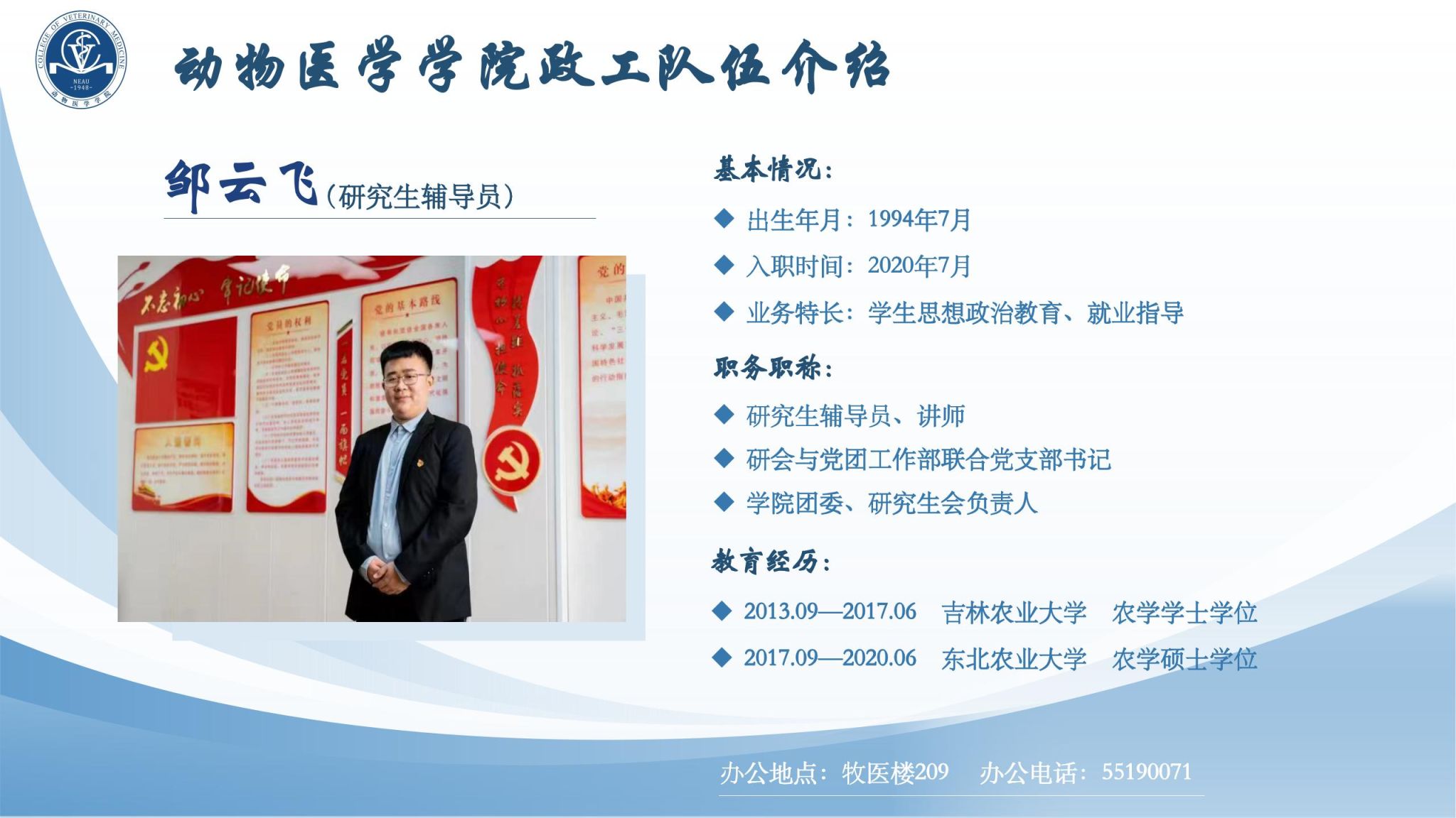 学院全体政工干部坚持以习近平新时代中国特色社会主义思想为指导,以“立德树人"为根本任务,切实加强对学生的政治领导、思想引导、情感疏导、学习辅导、行为教导、就业指导;争做“四有”好老师,当好学生"四个引路人”,履行好伟大工程的施工员、伟大事业的质检员、伟大斗争的战斗员、伟大梦想的服务员职责,做学生为学、为事、为人的示范;认真贯彻党的教育方针,模范担当为党育人、为国育才初心使命,努力培养德智体美劳全面发展的社会主义建设者和接班人。